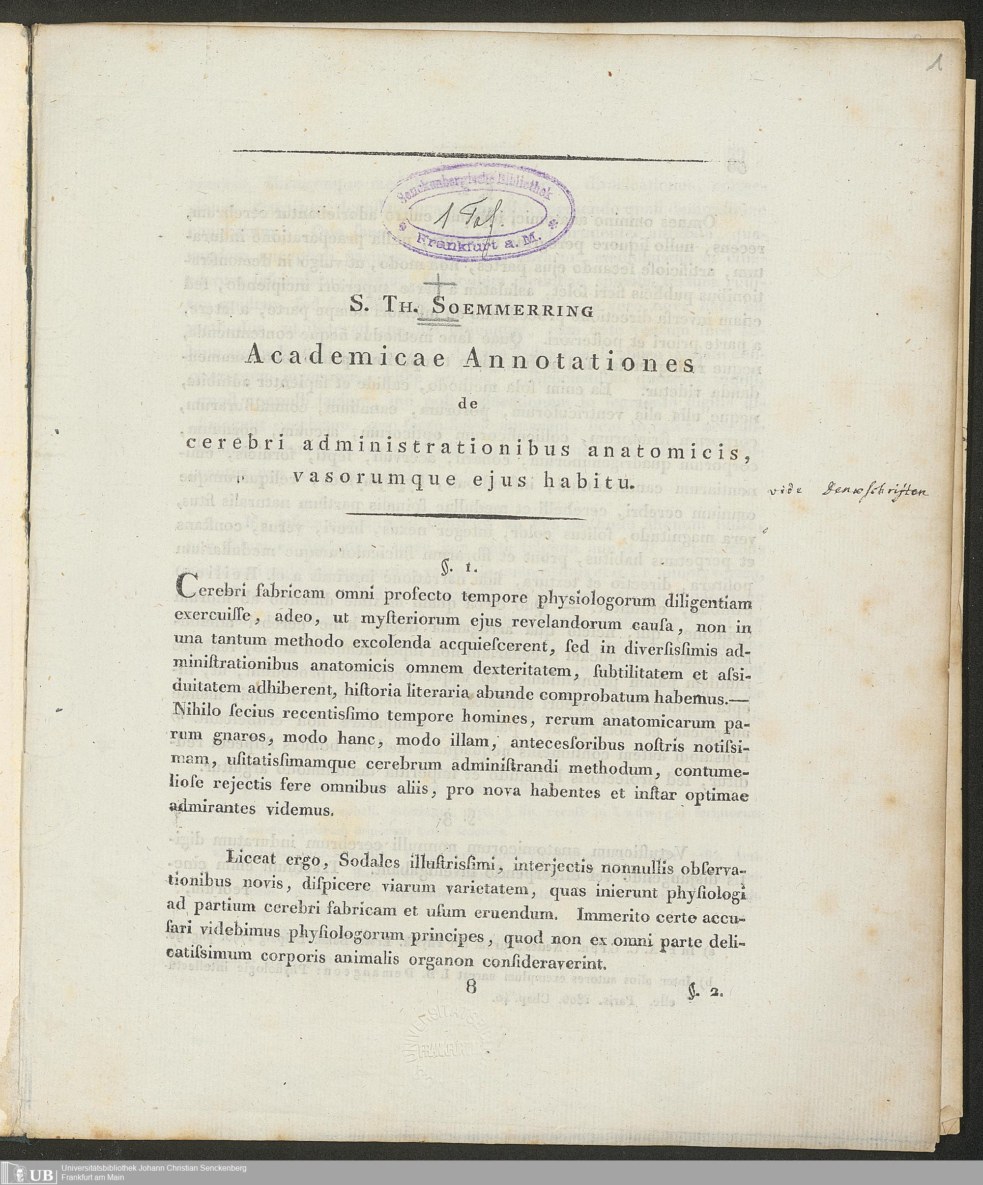 Soe 19 - Academicae annotationes de cerebri administrationibus anatomicis, vasorumque ejus habitu