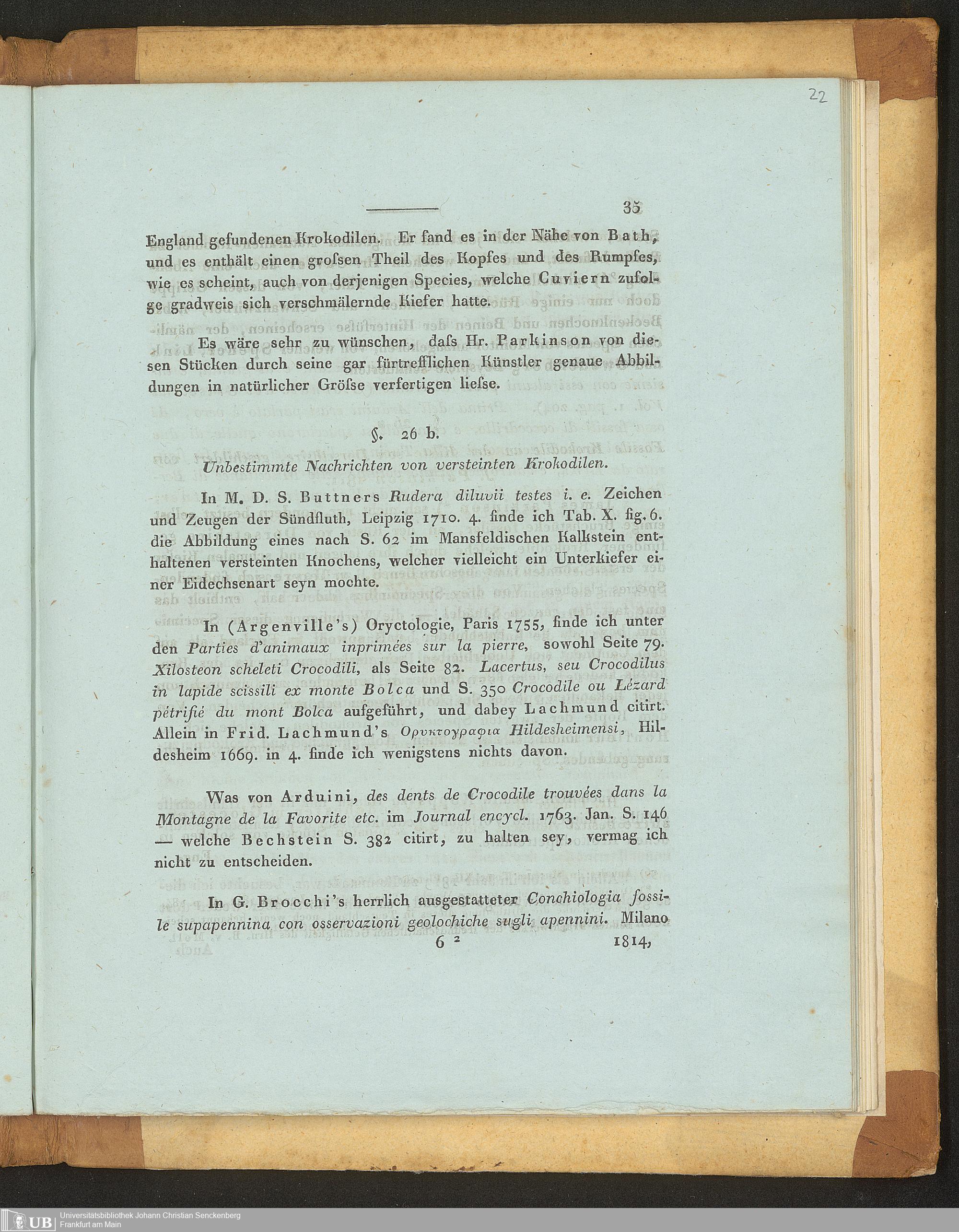 Soe 24 - Ueber den Crocodilus priscus oder über ein in Baiern versteint gefundenes schmalkieferiges Krokodil, Gavial der Vorwelt.