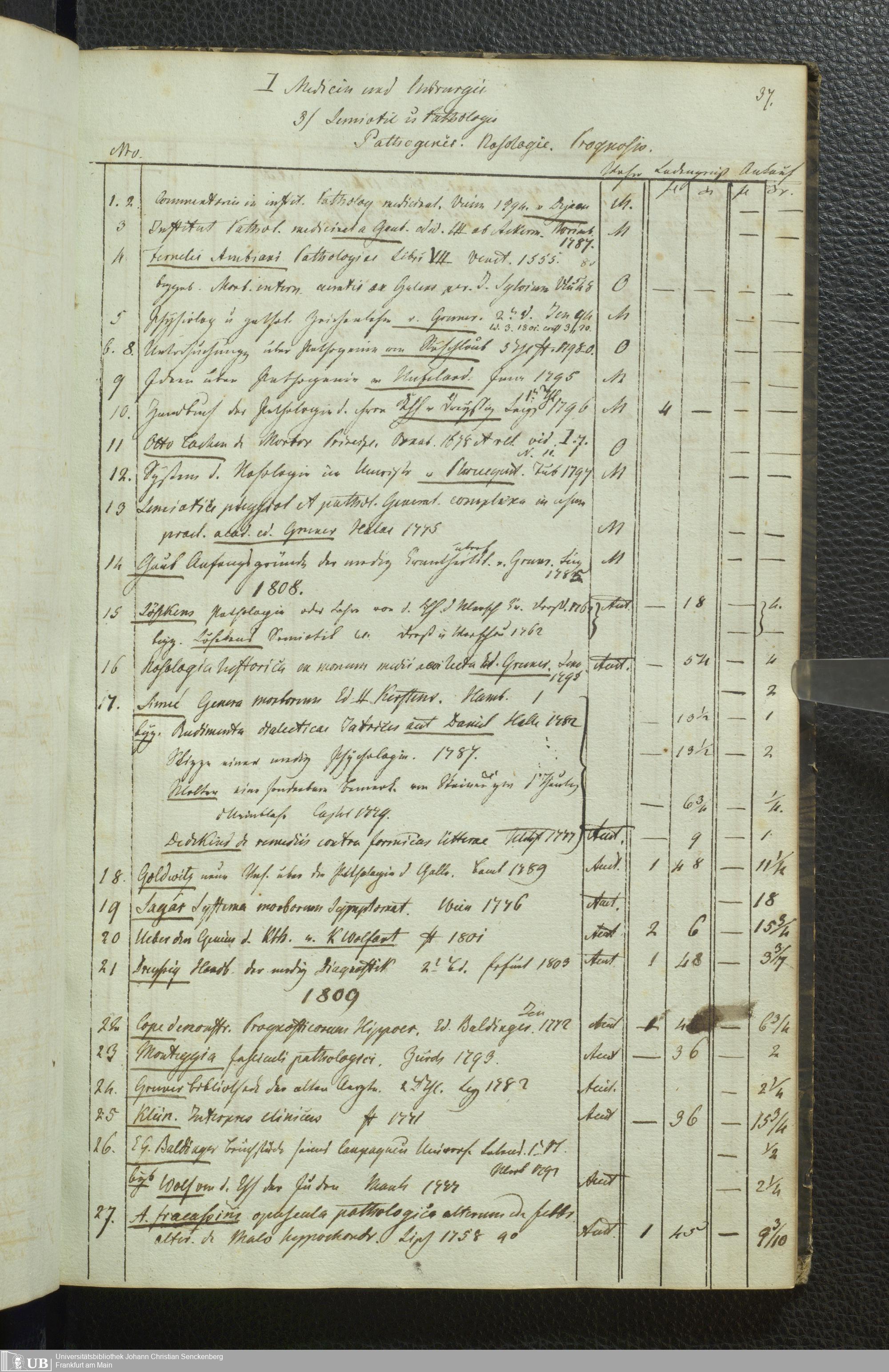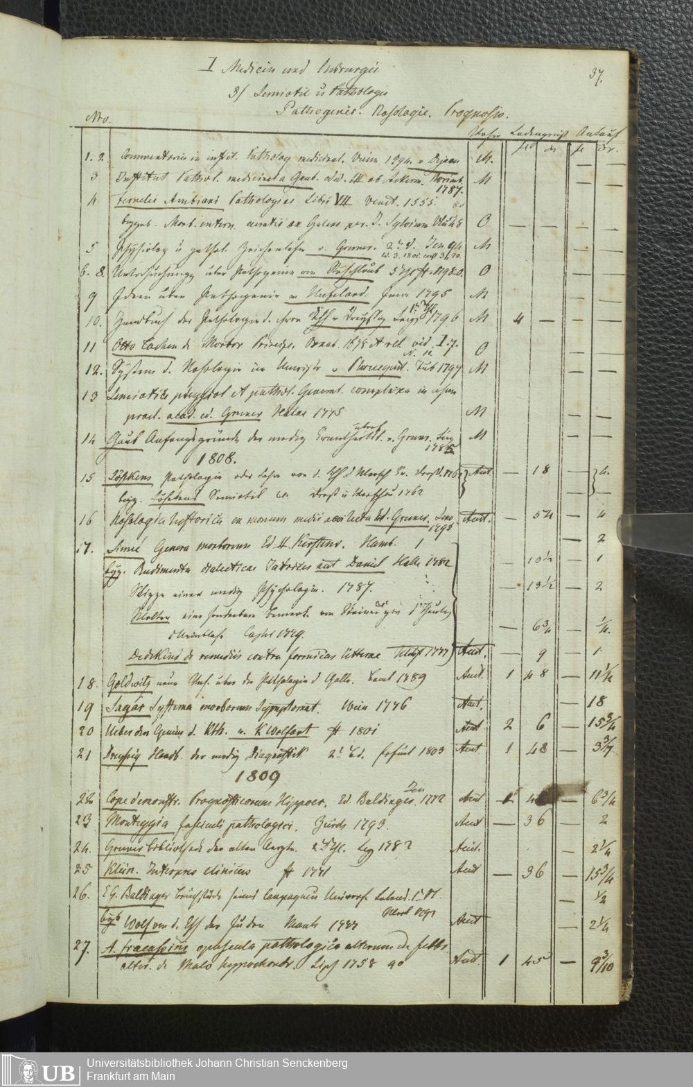 Ms. Ff. G. Kloß III.5 - Büchersammlung von Georg Kloss. Med. et. Chir. Stud. Moeno-Francf. In ein Verzeichniss gebracht.
