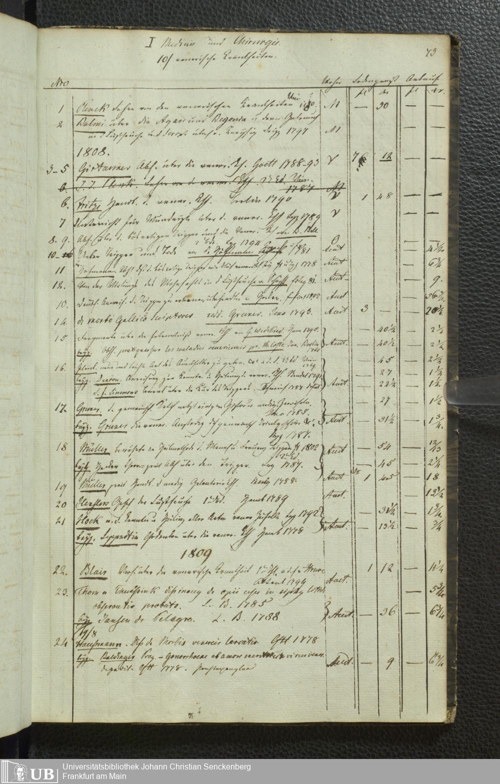 Ms. Ff. G. Kloß III.5 - Büchersammlung von Georg Kloss. Med. et. Chir. Stud. Moeno-Francf. In ein Verzeichniss gebracht.