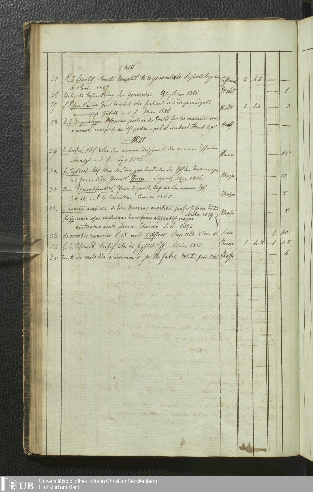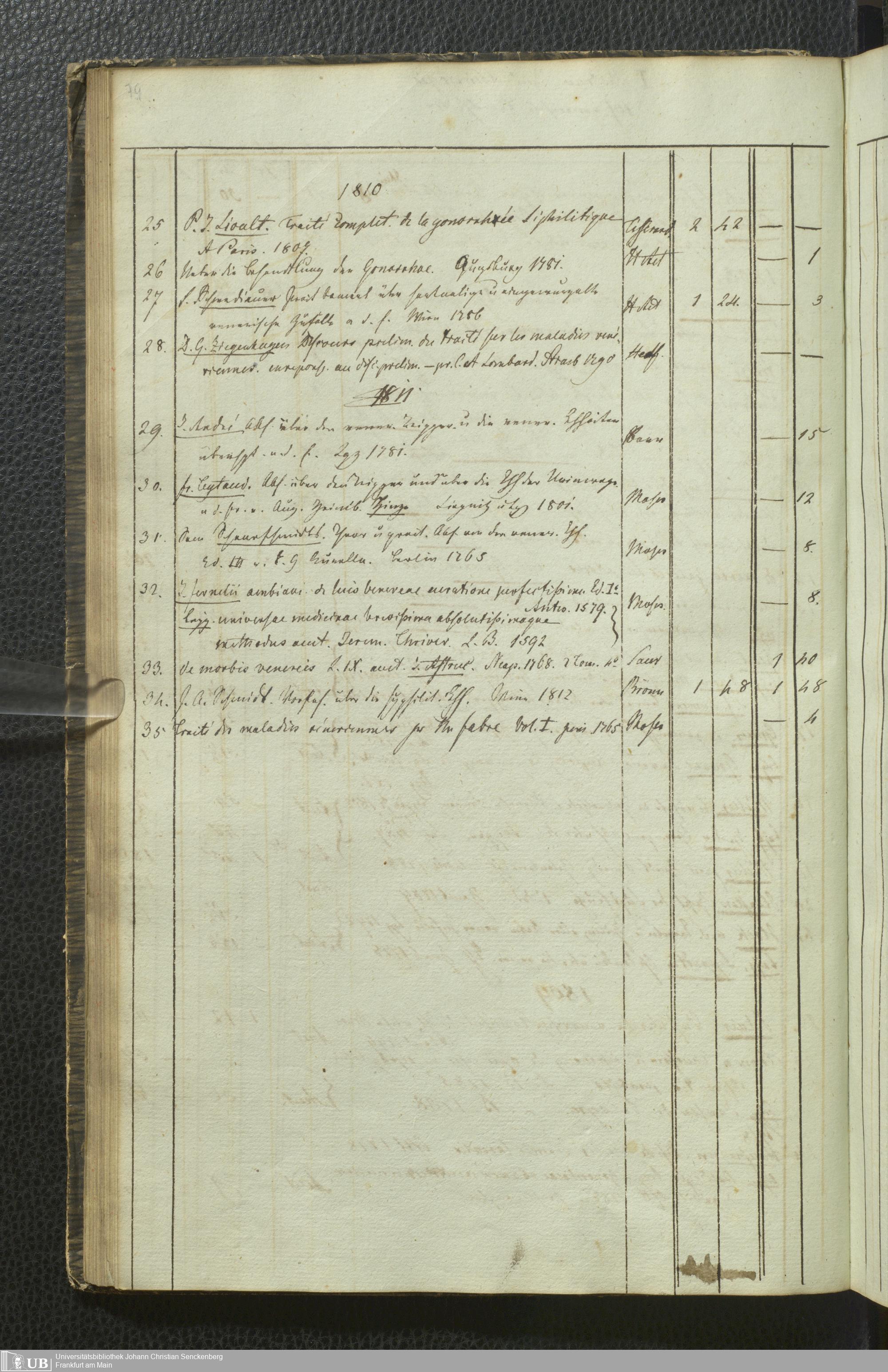 Ms. Ff. G. Kloß III.5 - Büchersammlung von Georg Kloss. Med. et. Chir. Stud. Moeno-Francf. In ein Verzeichniss gebracht.