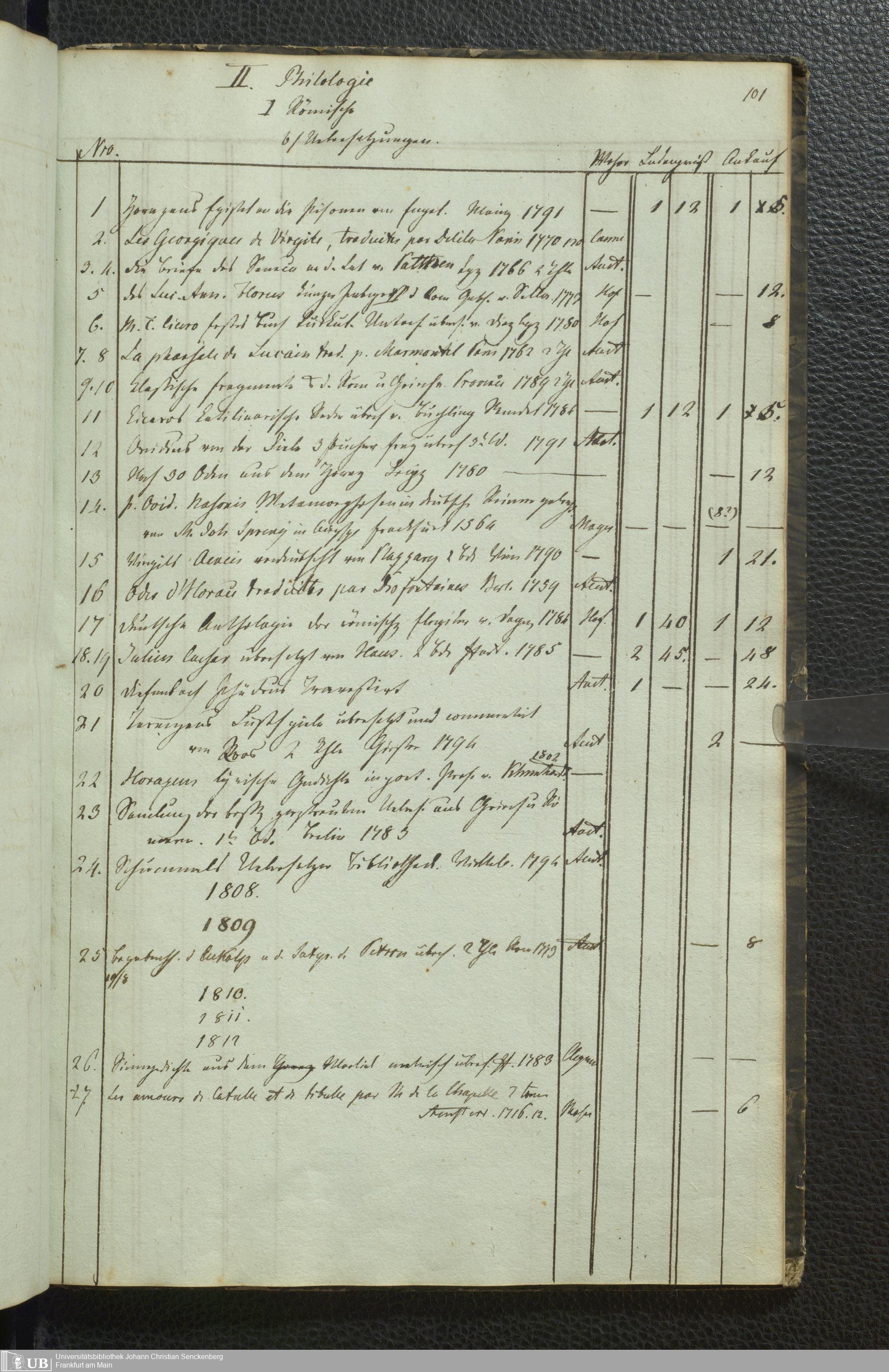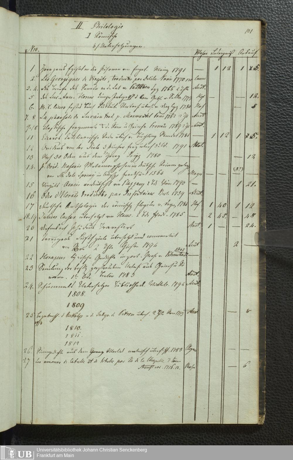Ms. Ff. G. Kloß III.5 - Büchersammlung von Georg Kloss. Med. et. Chir. Stud. Moeno-Francf. In ein Verzeichniss gebracht.