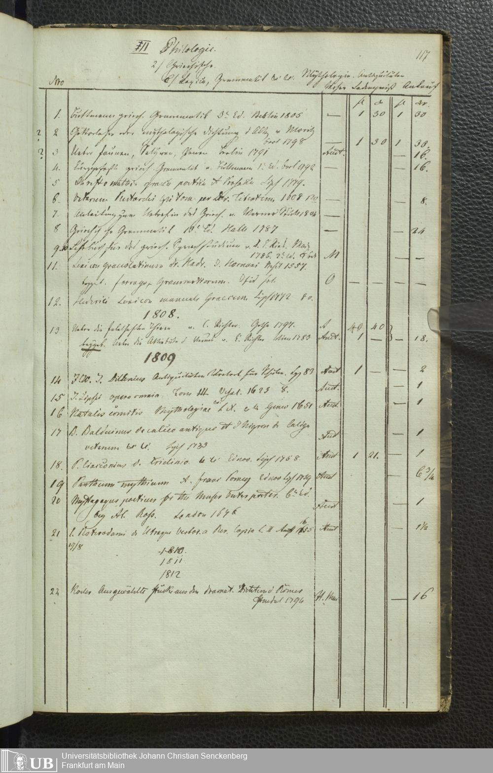 Ms. Ff. G. Kloß III.5 - Büchersammlung von Georg Kloss. Med. et. Chir. Stud. Moeno-Francf. In ein Verzeichniss gebracht.
