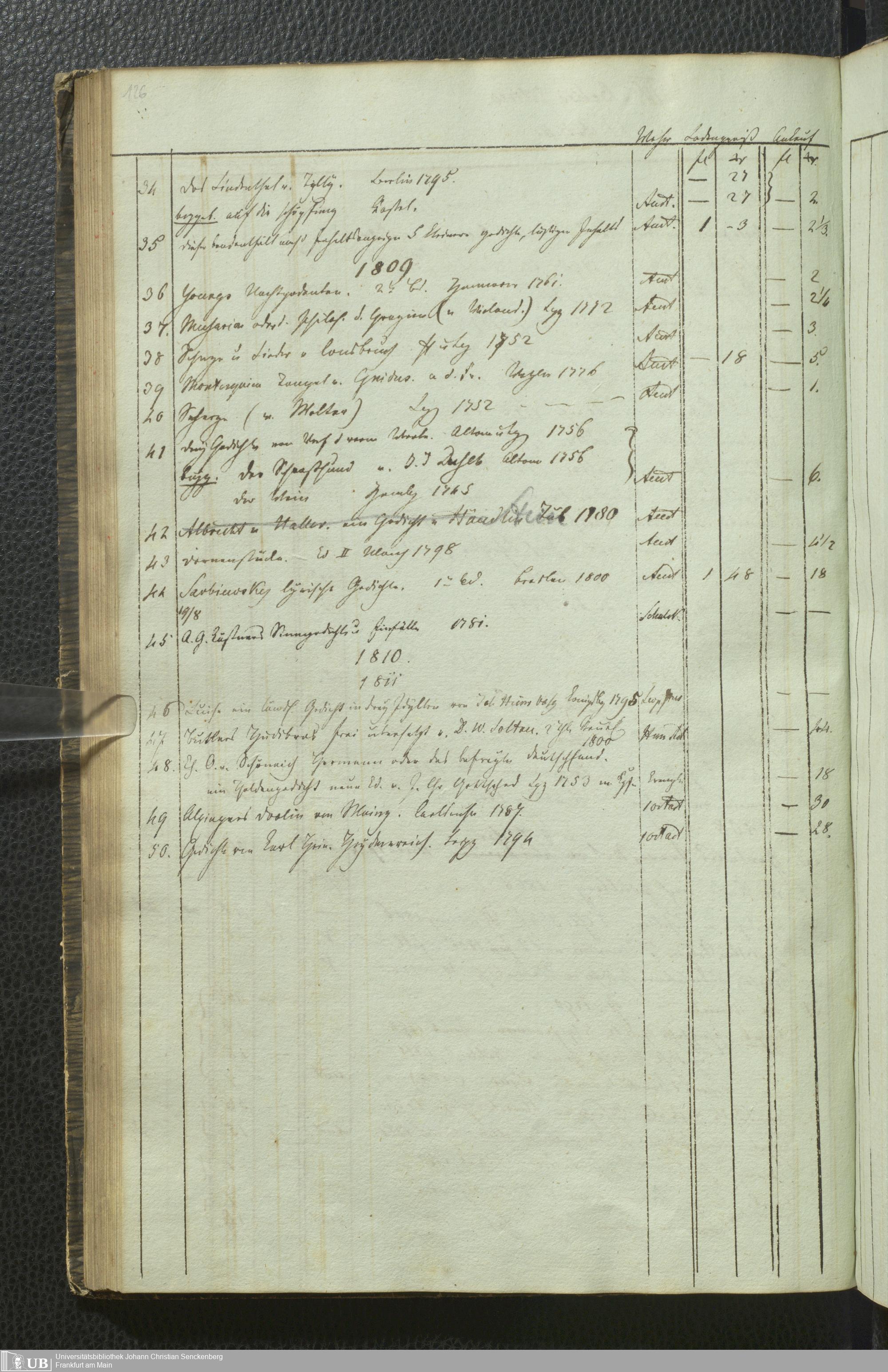 Ms. Ff. G. Kloß III.5 - Büchersammlung von Georg Kloss. Med. et. Chir. Stud. Moeno-Francf. In ein Verzeichniss gebracht.