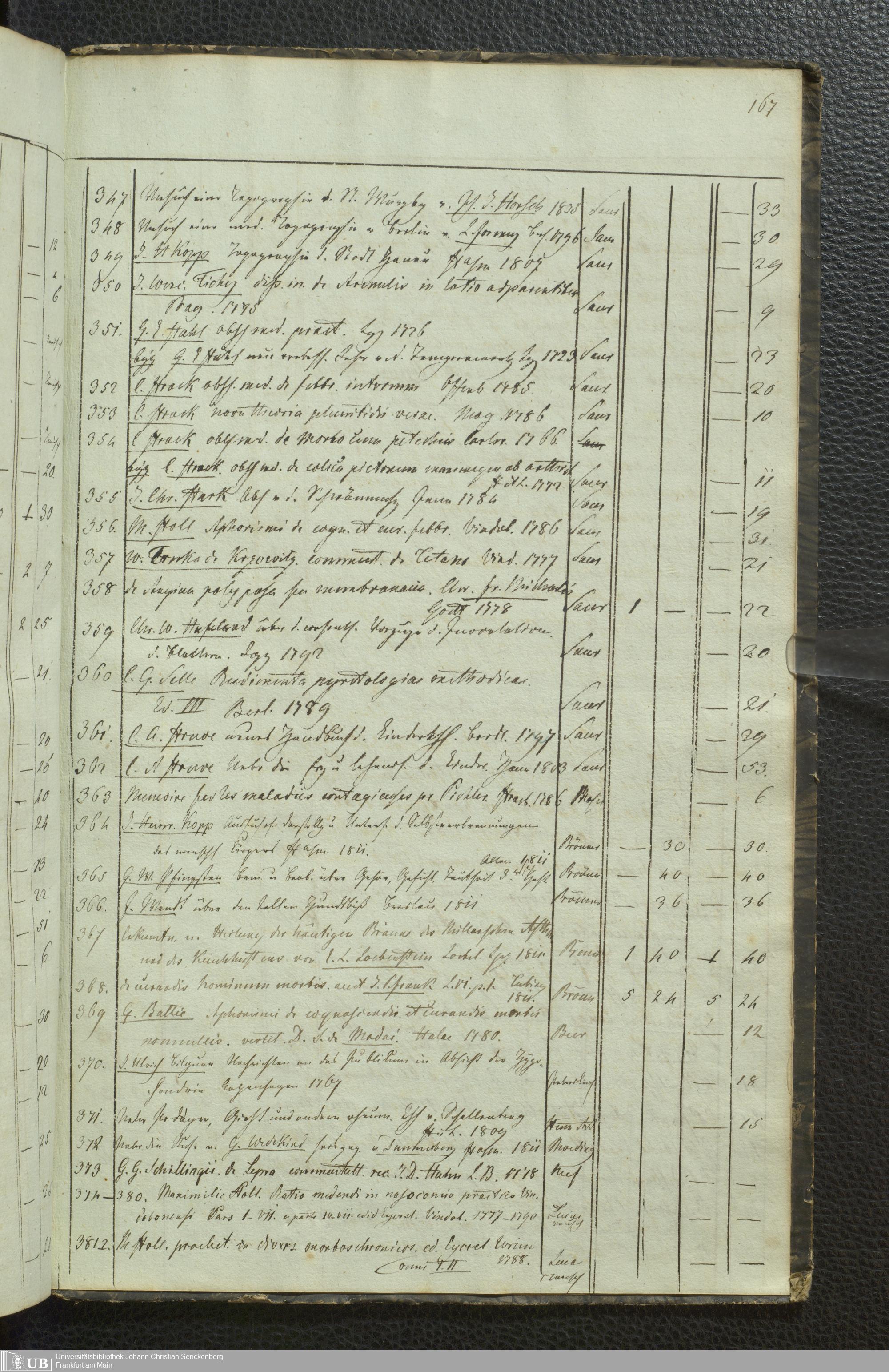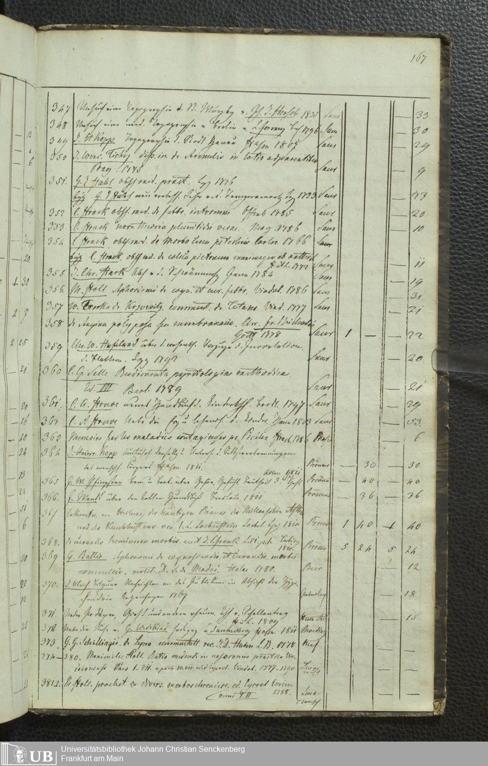 Ms. Ff. G. Kloß III.5 - Büchersammlung von Georg Kloss. Med. et. Chir. Stud. Moeno-Francf. In ein Verzeichniss gebracht.