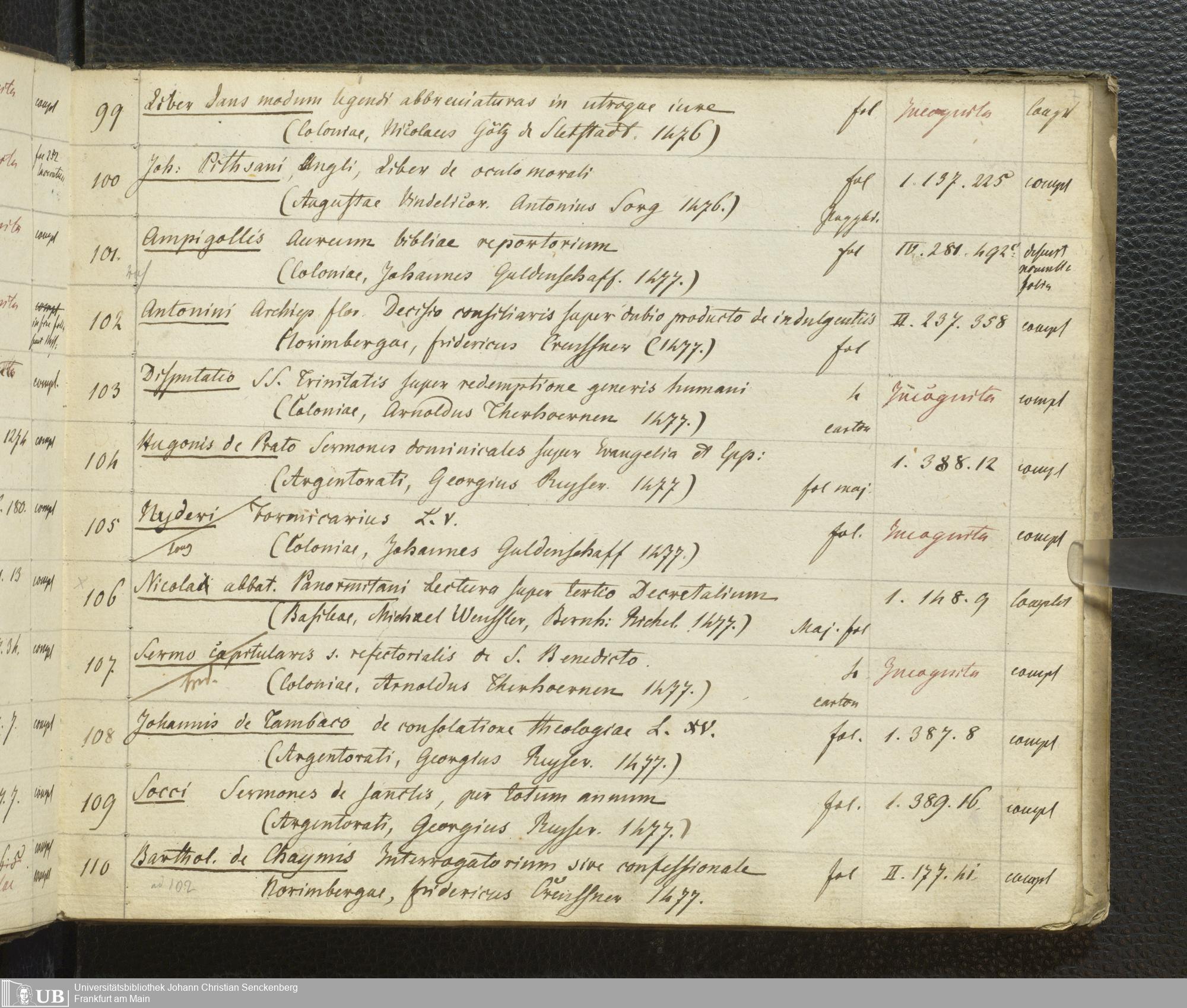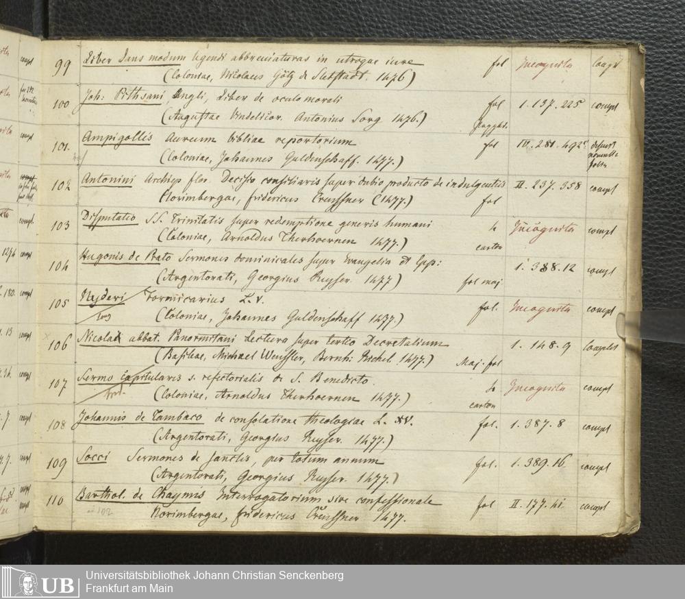 Ms. Ff. G. Kloß III.7 - Chronologisches Verzeichnis der Drucke 1468 - 1540