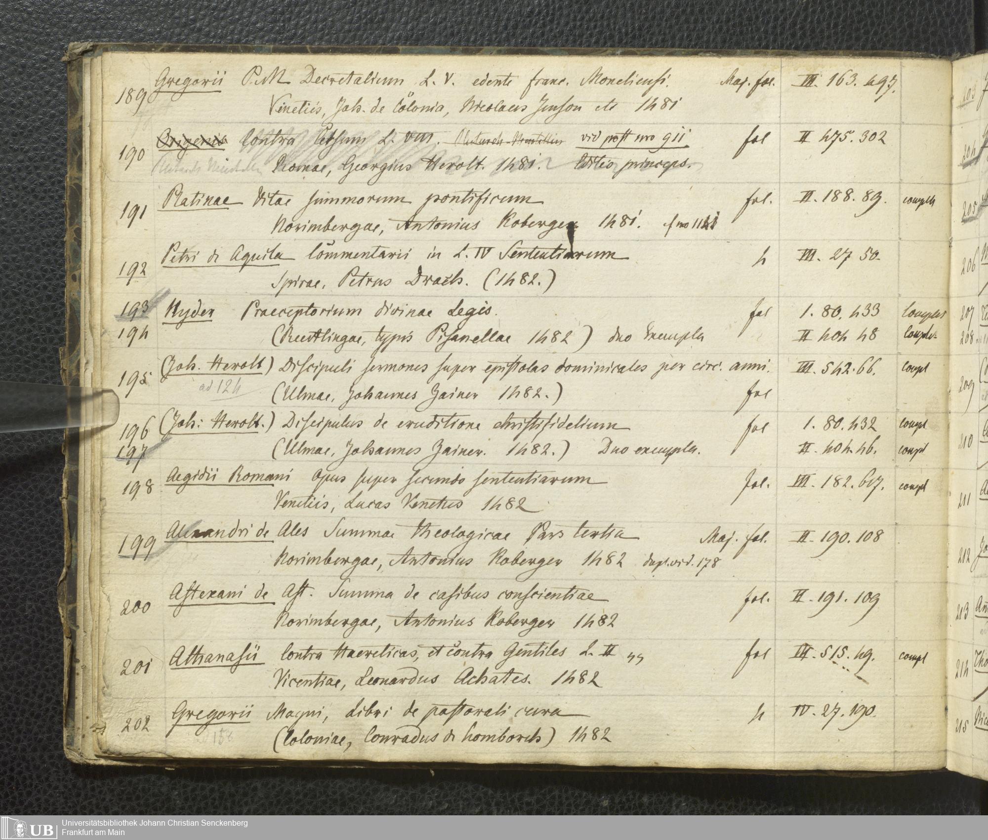 Ms. Ff. G. Kloß III.7 - Chronologisches Verzeichnis der Drucke 1468 - 1540