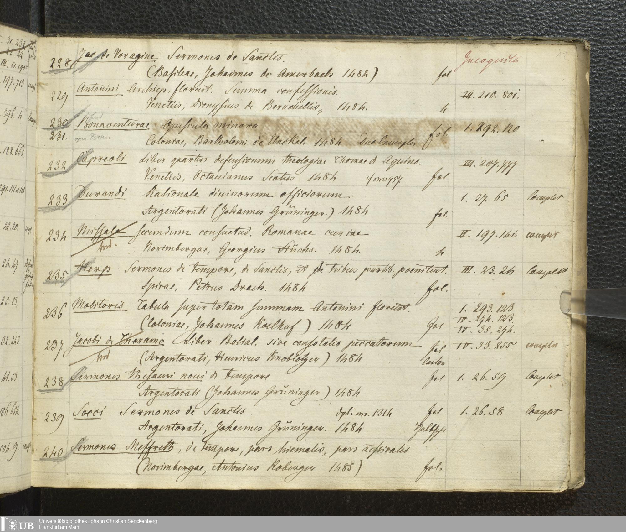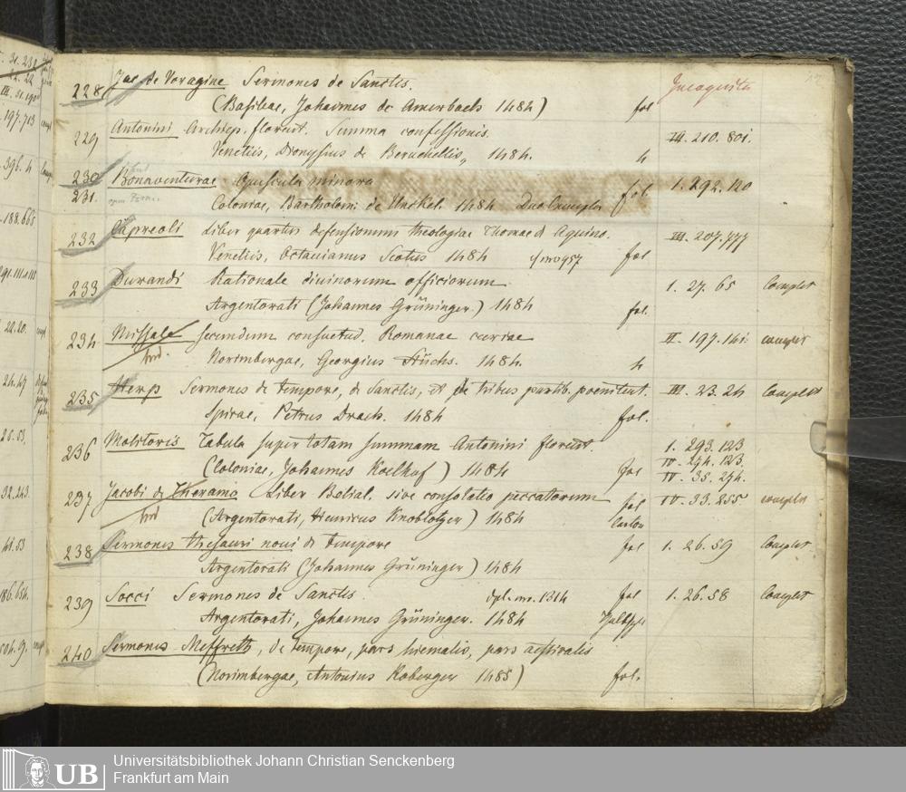 Ms. Ff. G. Kloß III.7 - Chronologisches Verzeichnis der Drucke 1468 - 1540