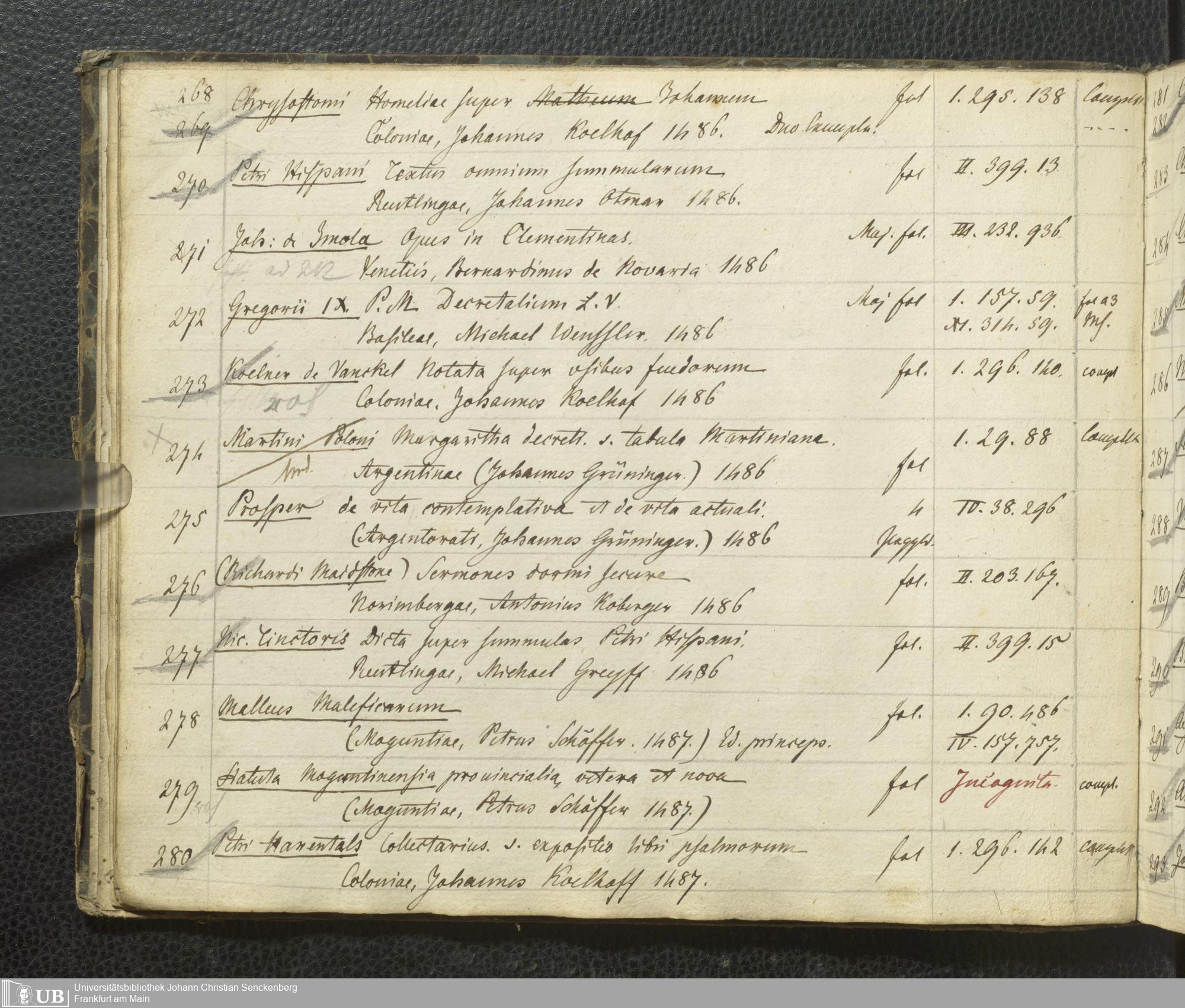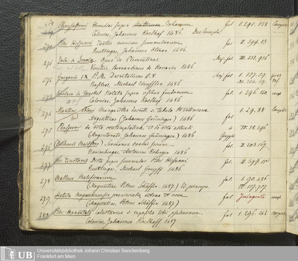 Ms. Ff. G. Kloß III.7 - Chronologisches Verzeichnis der Drucke 1468 - 1540