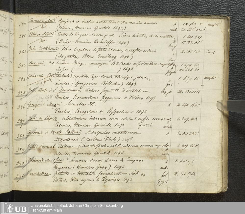 Ms. Ff. G. Kloß III.7 - Chronologisches Verzeichnis der Drucke 1468 - 1540