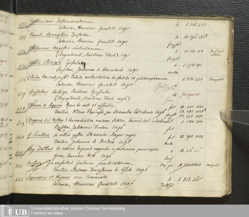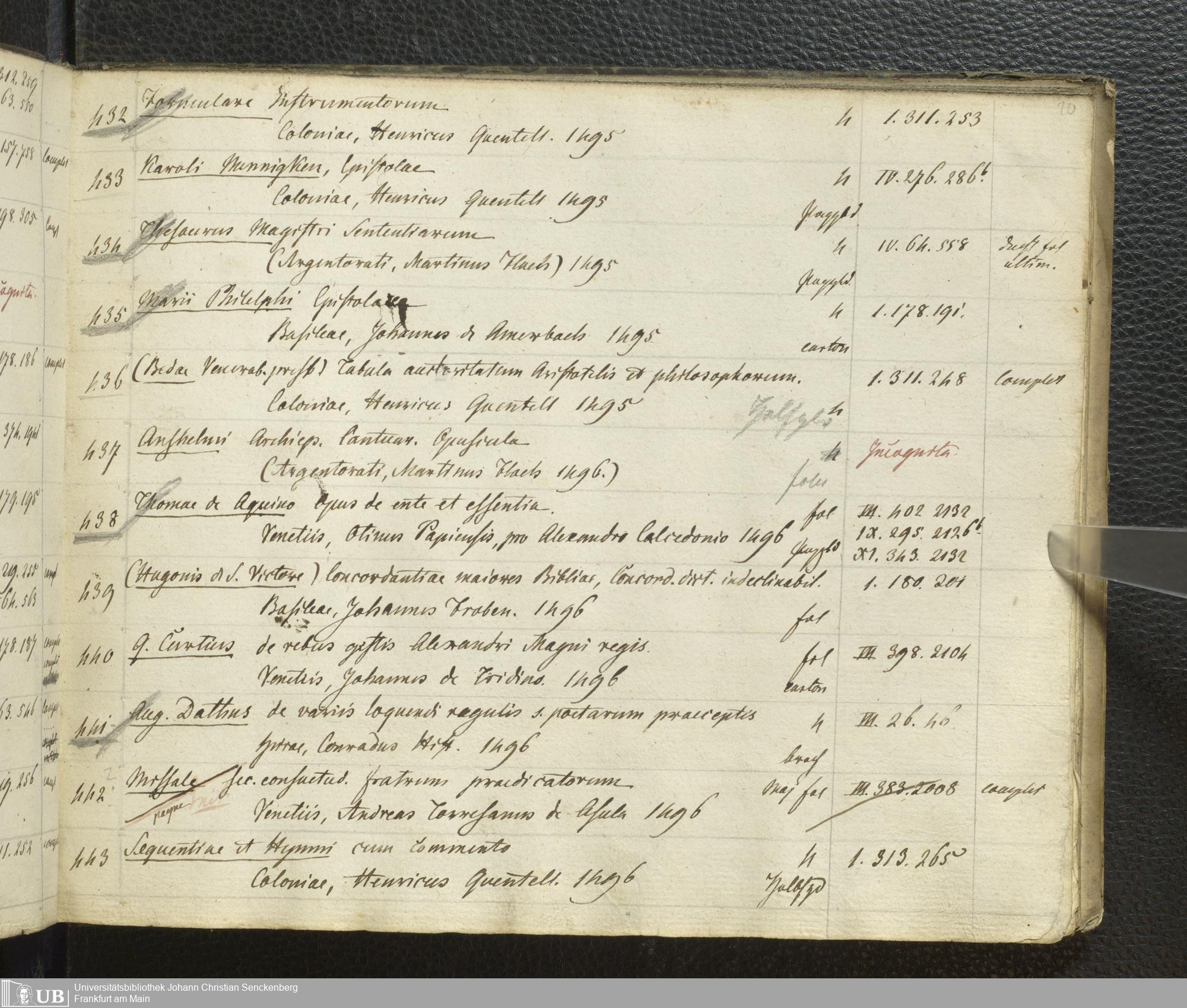Ms. Ff. G. Kloß III.7 - Chronologisches Verzeichnis der Drucke 1468 - 1540