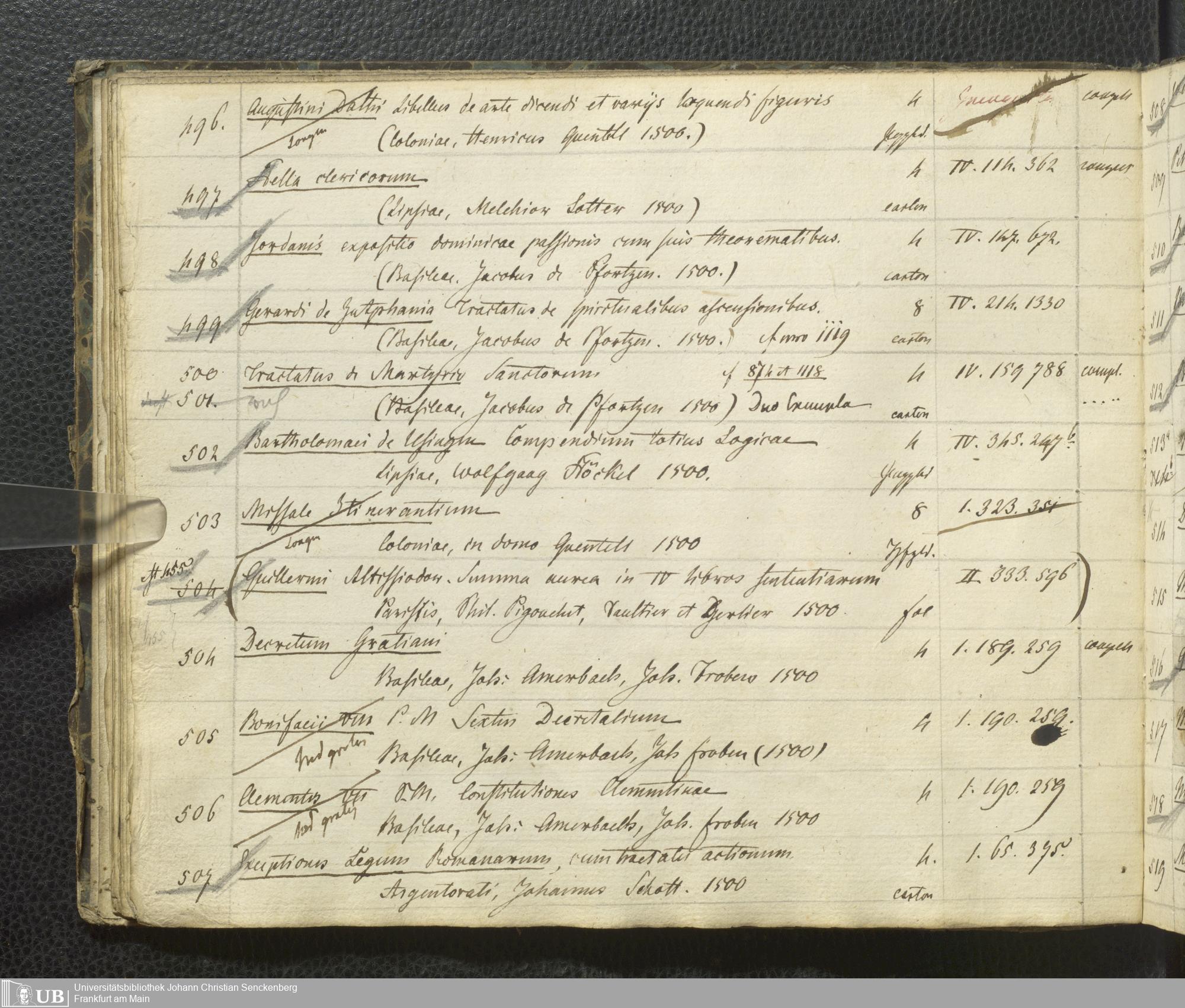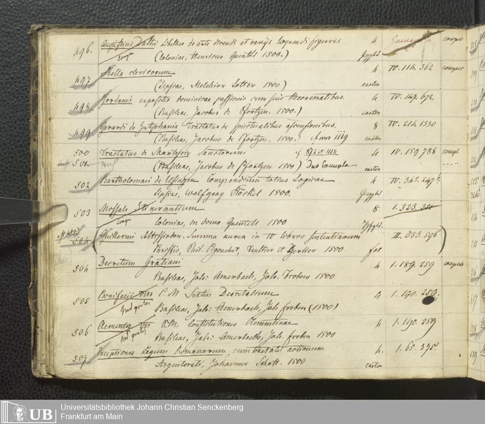 Ms. Ff. G. Kloß III.7 - Chronologisches Verzeichnis der Drucke 1468 - 1540