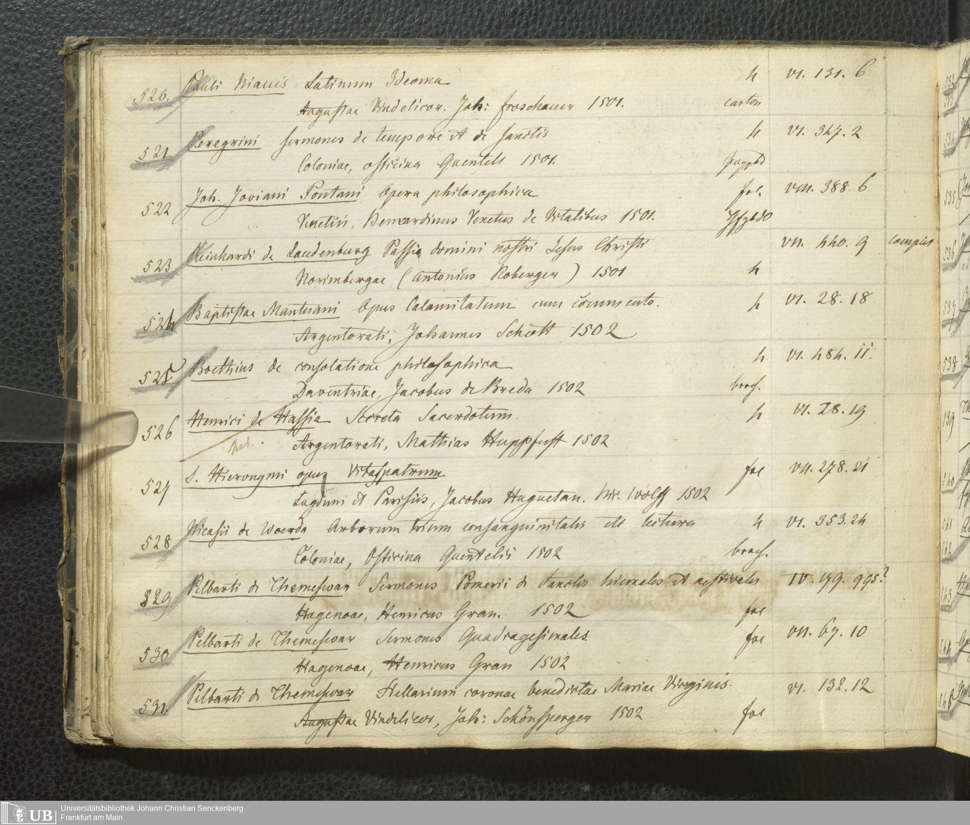 Ms. Ff. G. Kloß III.7 - Chronologisches Verzeichnis der Drucke 1468 - 1540