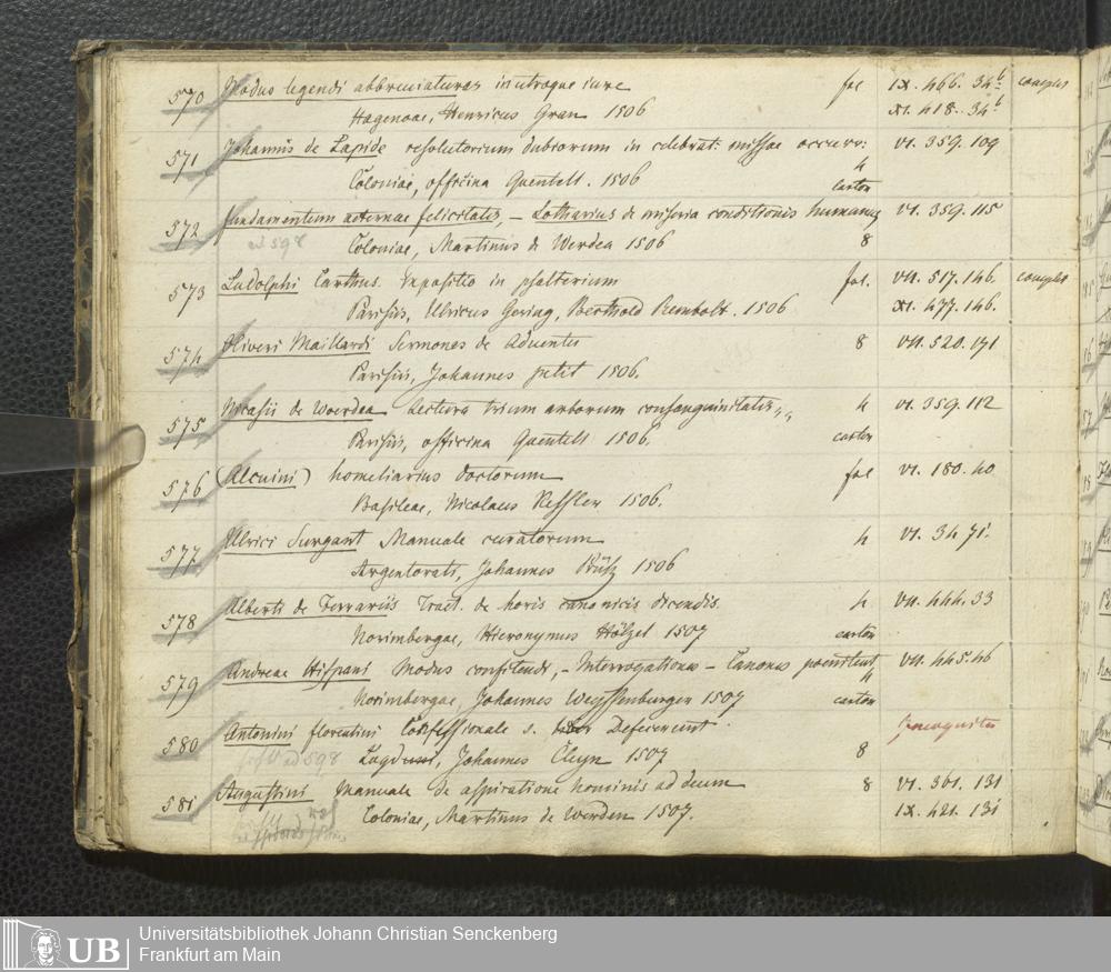 Ms. Ff. G. Kloß III.7 - Chronologisches Verzeichnis der Drucke 1468 - 1540