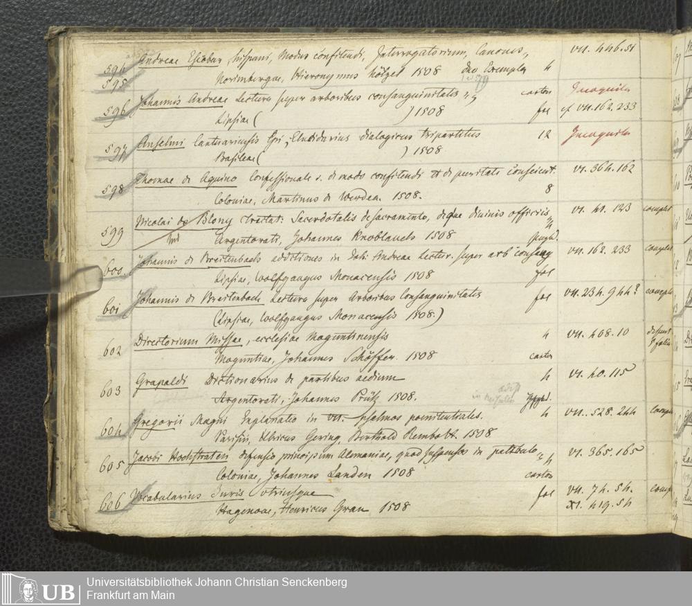 Ms. Ff. G. Kloß III.7 - Chronologisches Verzeichnis der Drucke 1468 - 1540