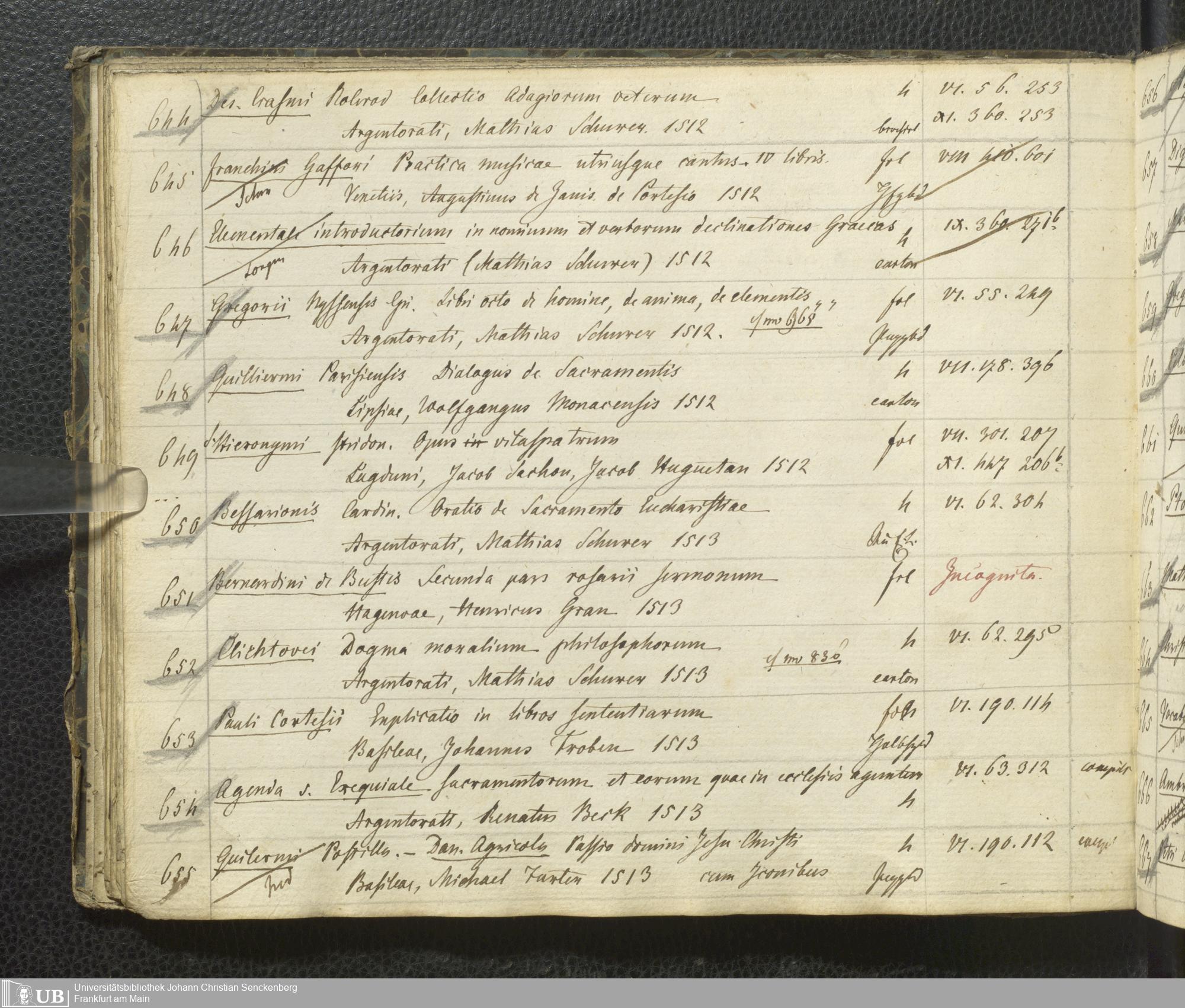 Ms. Ff. G. Kloß III.7 - Chronologisches Verzeichnis der Drucke 1468 - 1540