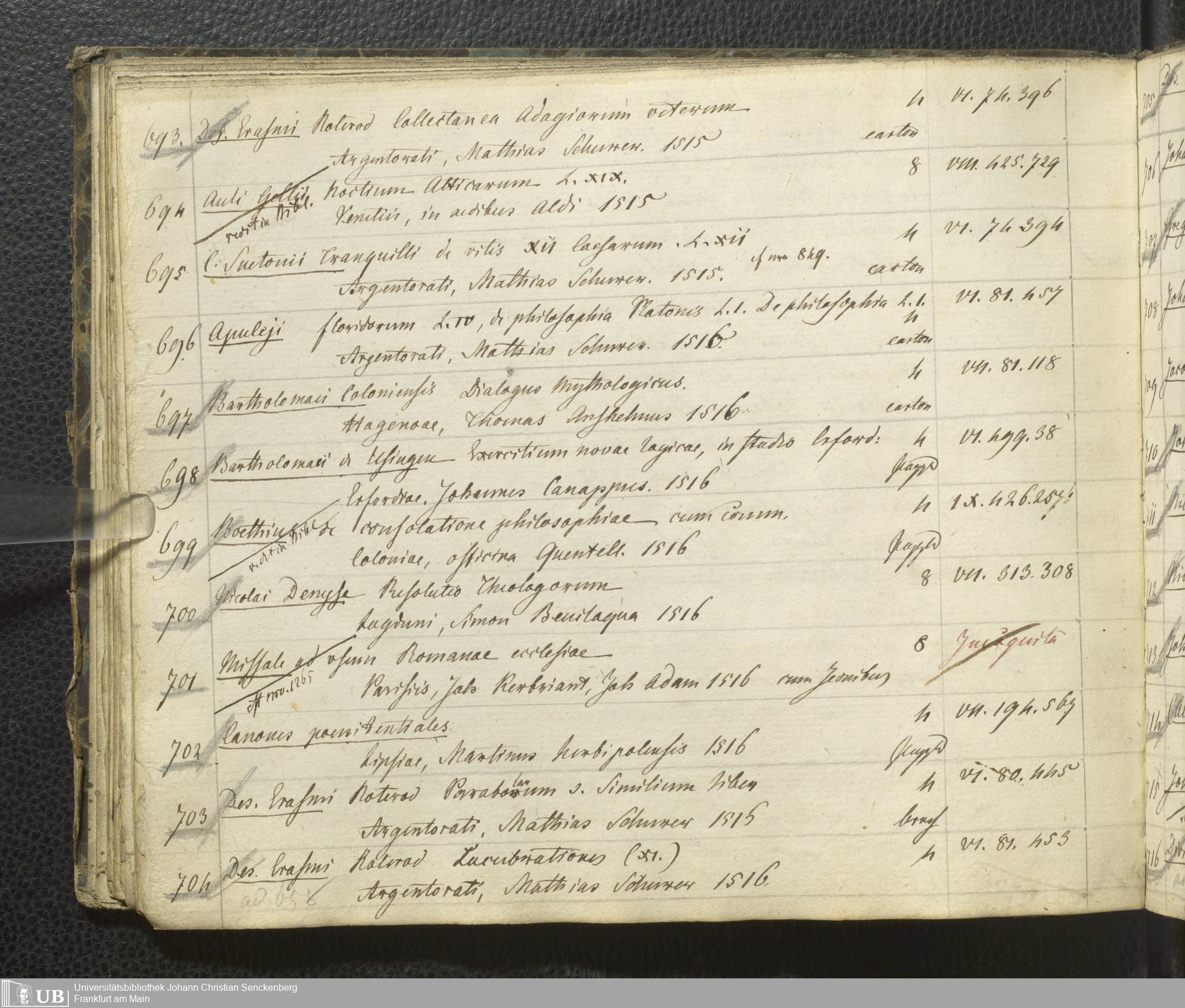 Ms. Ff. G. Kloß III.7 - Chronologisches Verzeichnis der Drucke 1468 - 1540