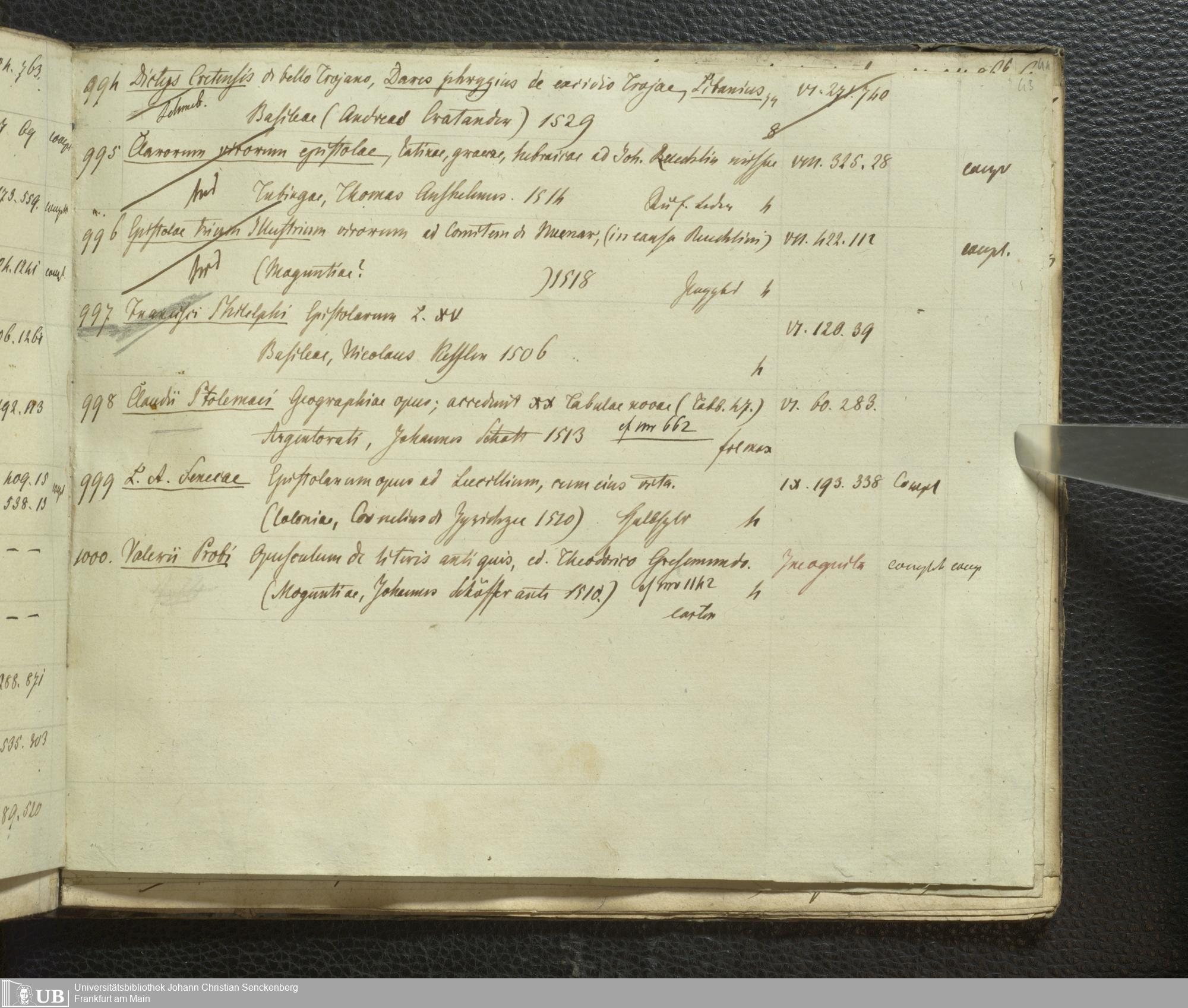 Ms. Ff. G. Kloß III.7 - Chronologisches Verzeichnis der Drucke 1468 - 1540
