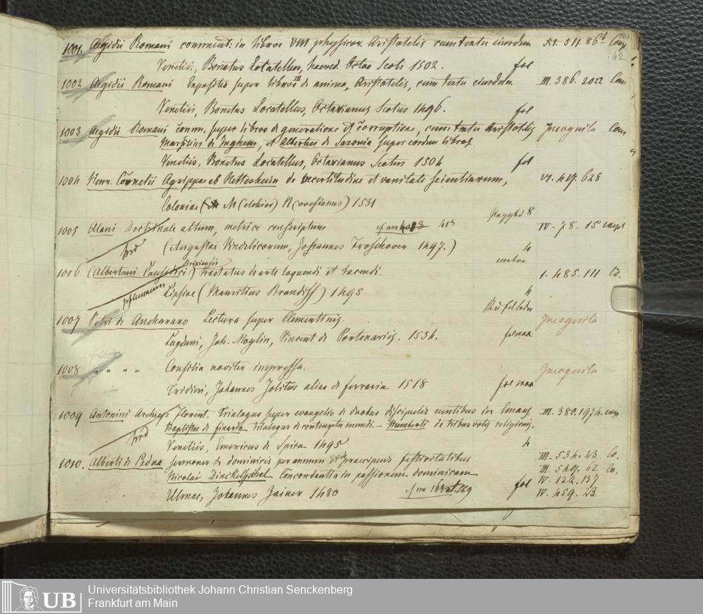 Ms. Ff. G. Kloß III.7 - Chronologisches Verzeichnis der Drucke 1468 - 1540