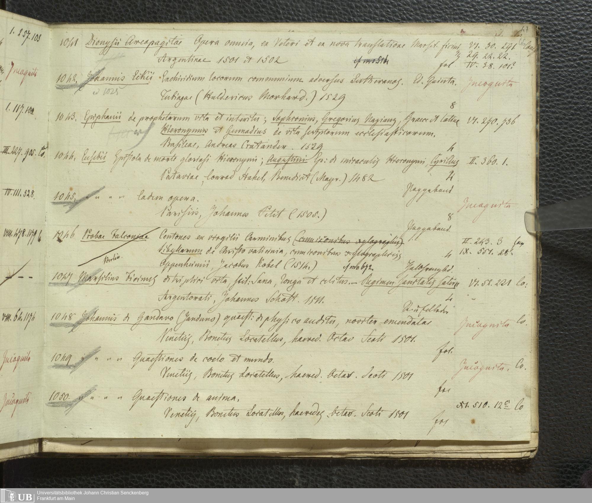 Ms. Ff. G. Kloß III.7 - Chronologisches Verzeichnis der Drucke 1468 - 1540