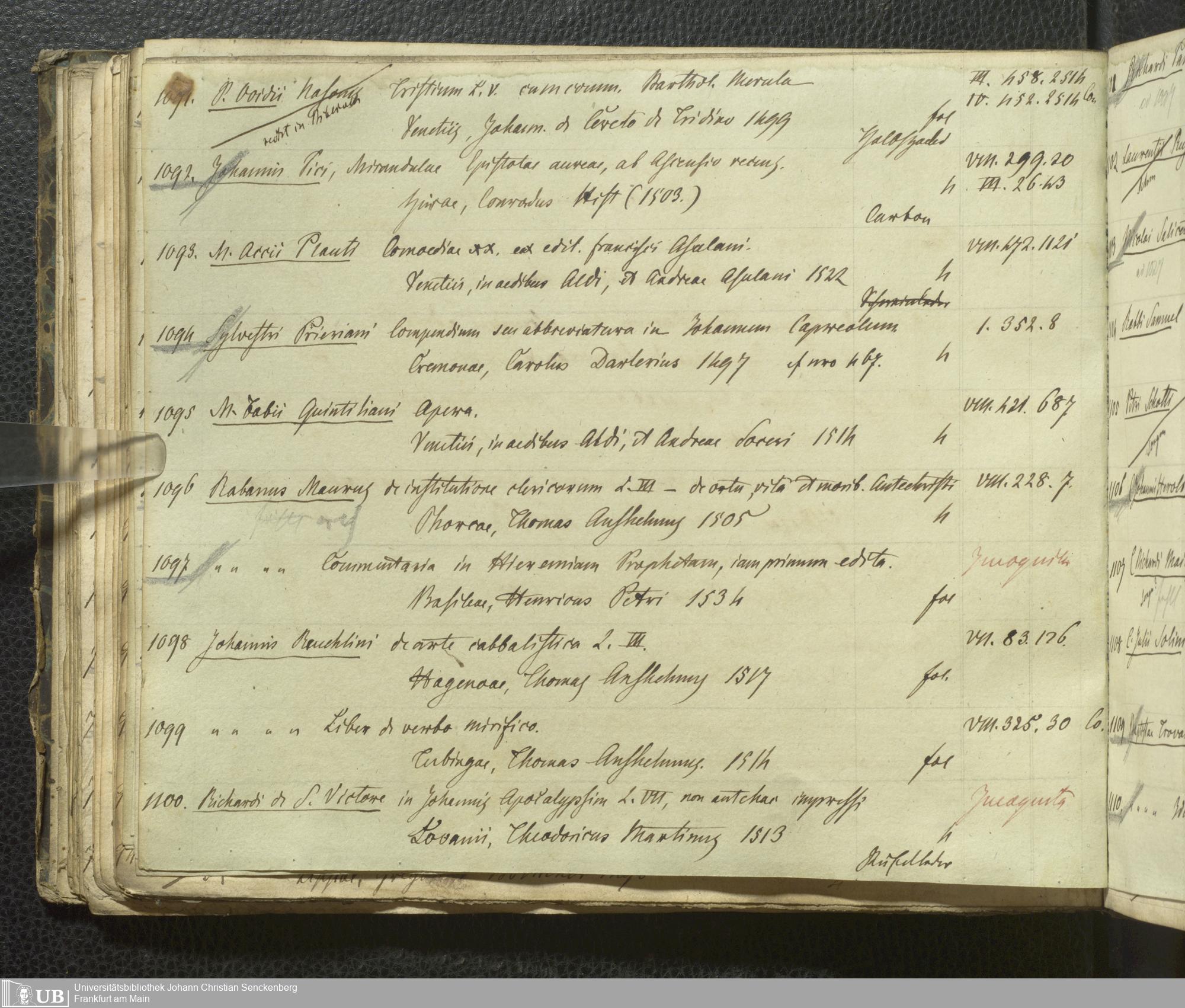 Ms. Ff. G. Kloß III.7 - Chronologisches Verzeichnis der Drucke 1468 - 1540