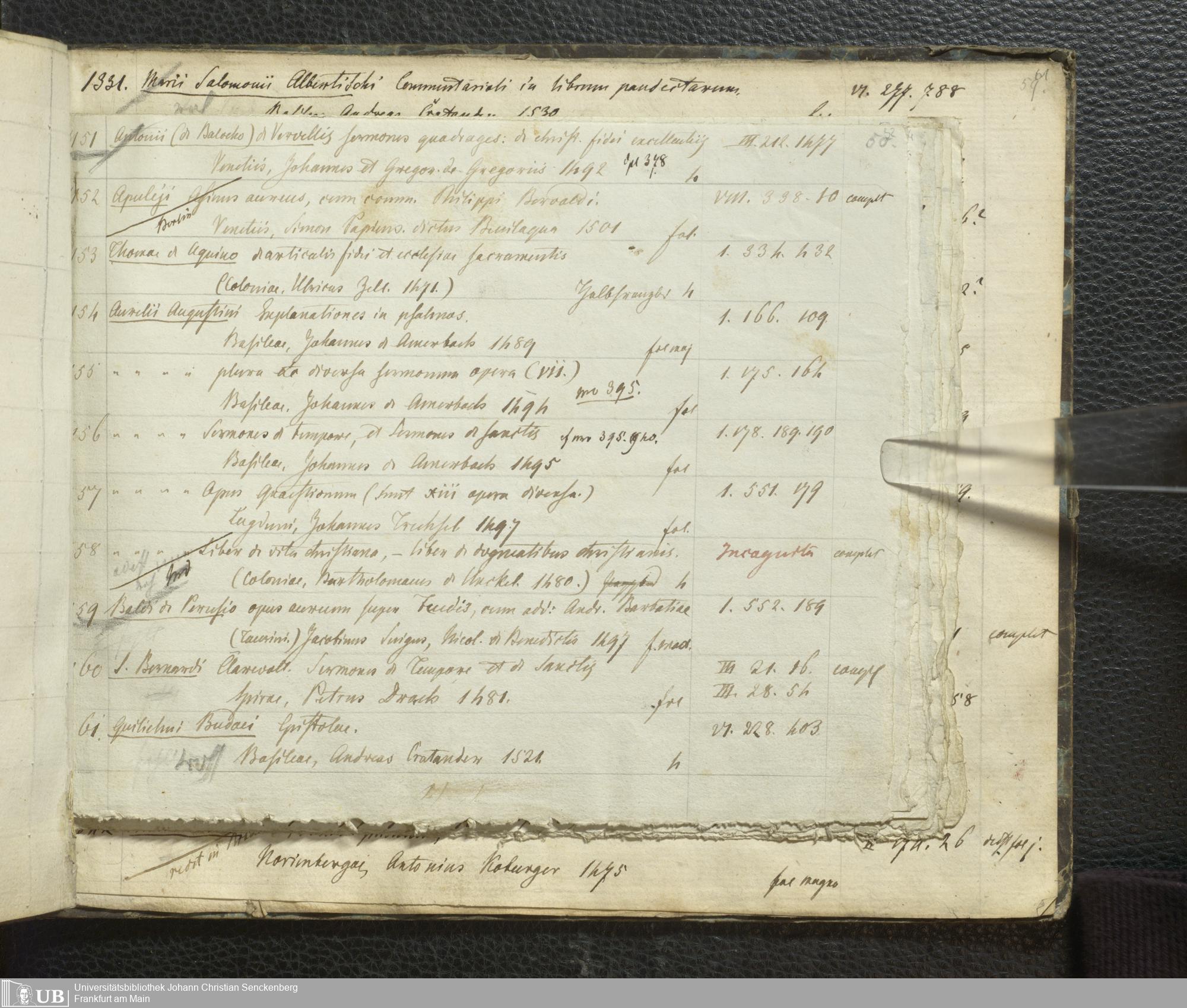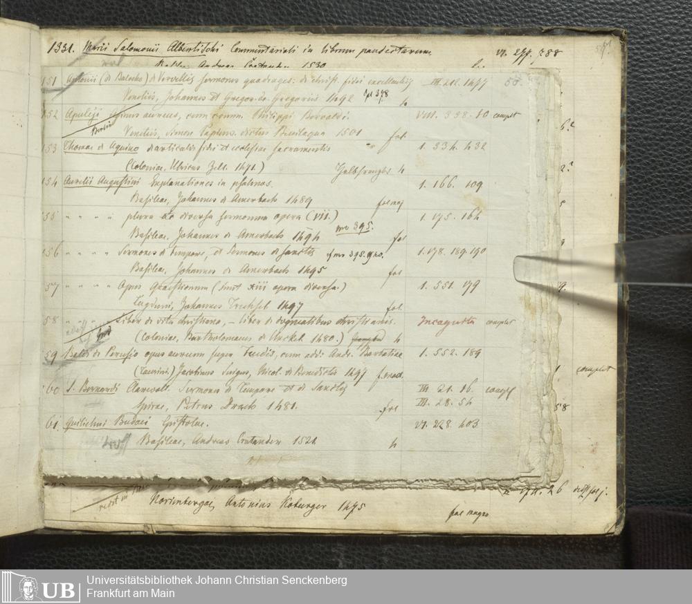 Ms. Ff. G. Kloß III.7 - Chronologisches Verzeichnis der Drucke 1468 - 1540