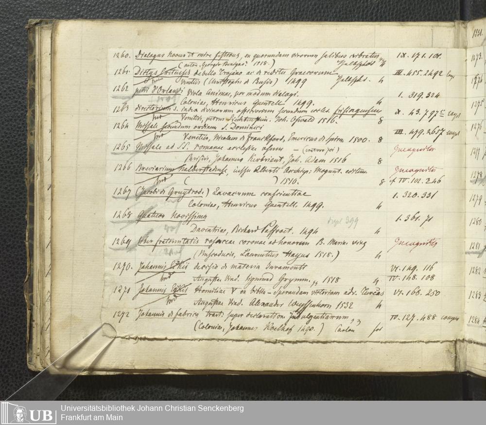Ms. Ff. G. Kloß III.7 - Chronologisches Verzeichnis der Drucke 1468 - 1540