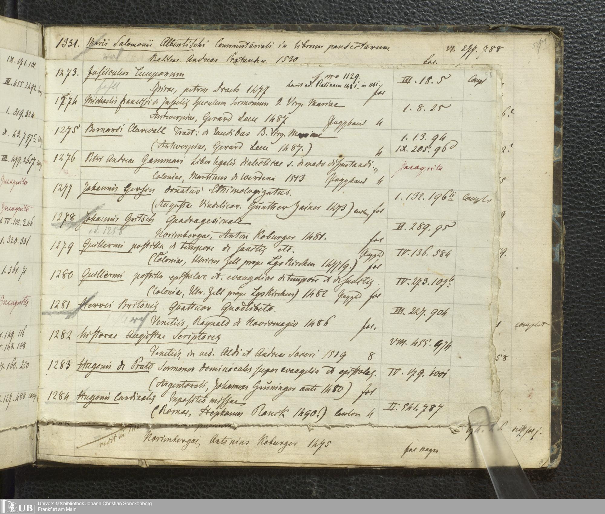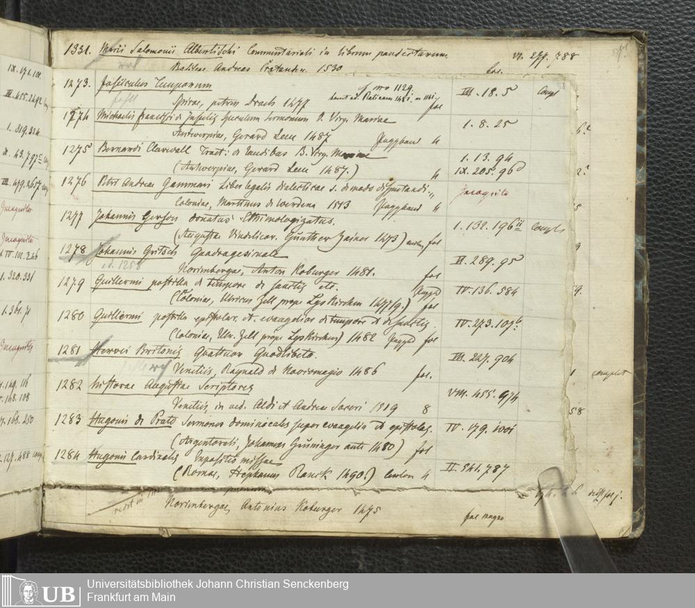 Ms. Ff. G. Kloß III.7 - Chronologisches Verzeichnis der Drucke 1468 - 1540