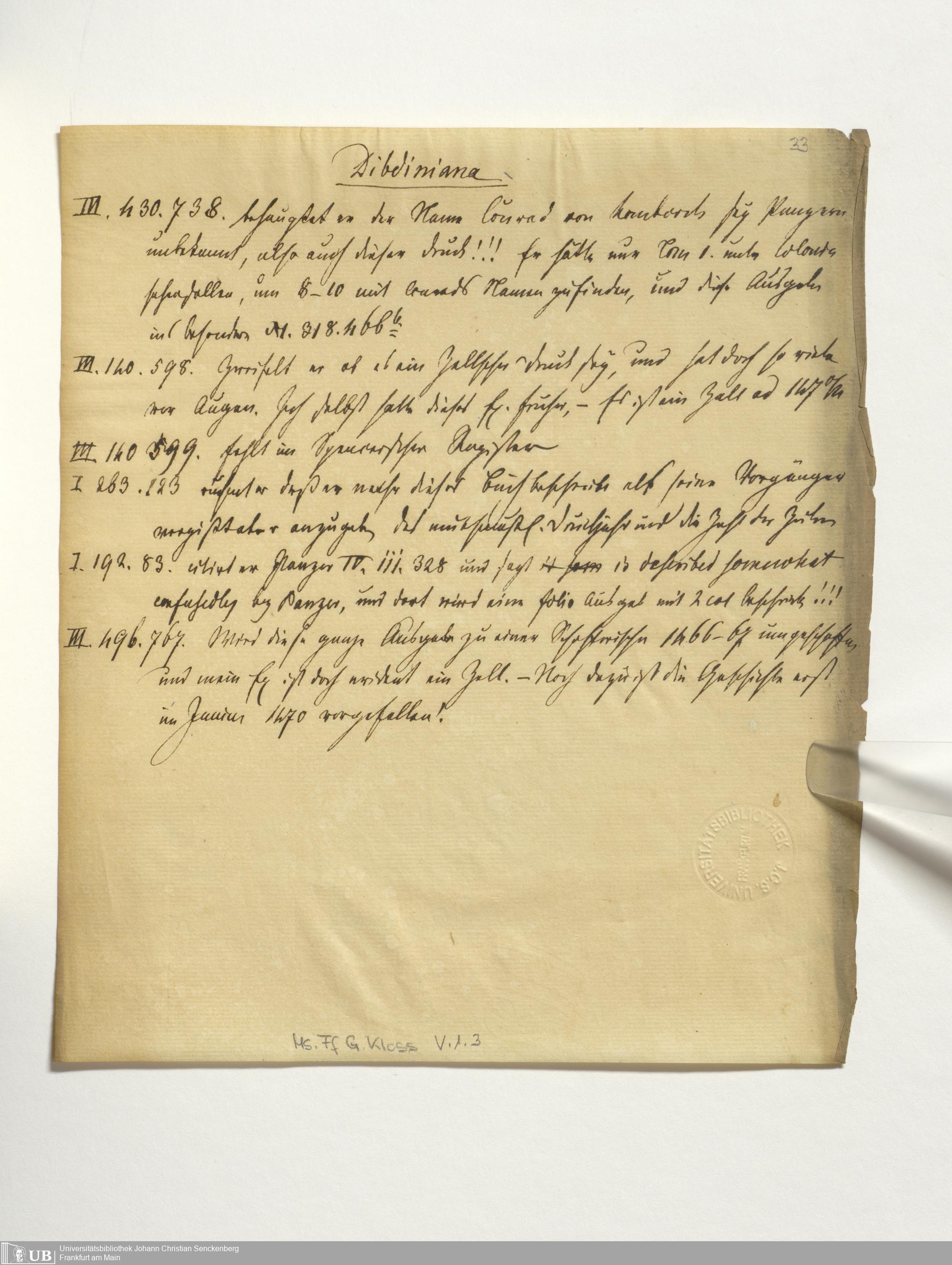 Ms. Ff. G. Kloß V.1.3 - Über Ulrich Zell's von Hanau älteste Drucke zur Bestimmung ihrer typographischen Characteristik und ihrer muthmasslichen Druckjahre verbunden mit nothwendigen Vergleichungen mit Conrad Winters von Homborch Druckwerken nebst zwey vergleichenden Schriftenabbildungen