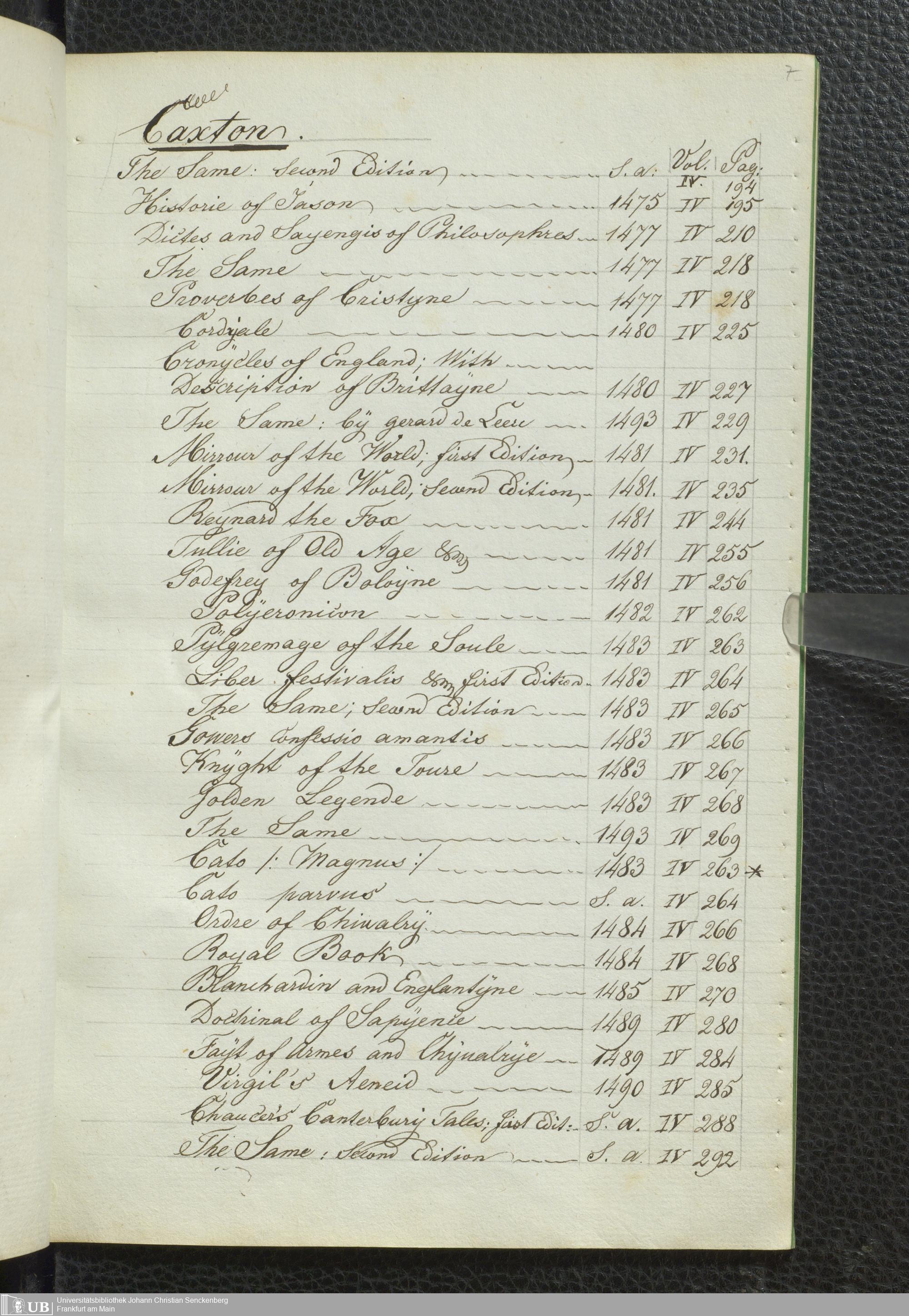 Ms. Ff. G. Kloß V.1.4 - Index of Printers, and of Editions executed by them. this list concerns only the four Volumes of the Bibliotheca Spenceriana.
