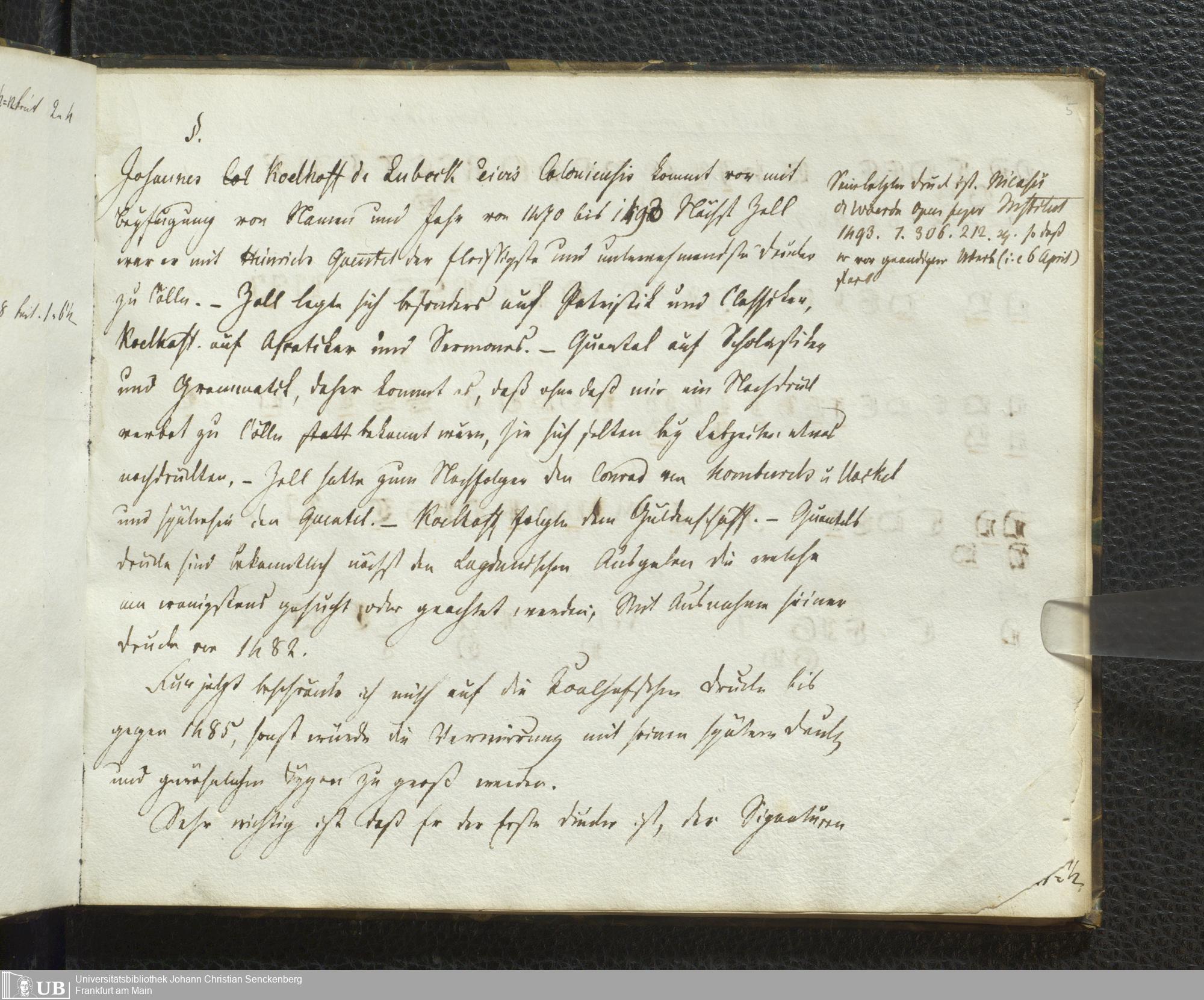 Ms. Ff. G. Kloß V.1.2 - Über die Drucker zu Köln im 15. Jahrhundert