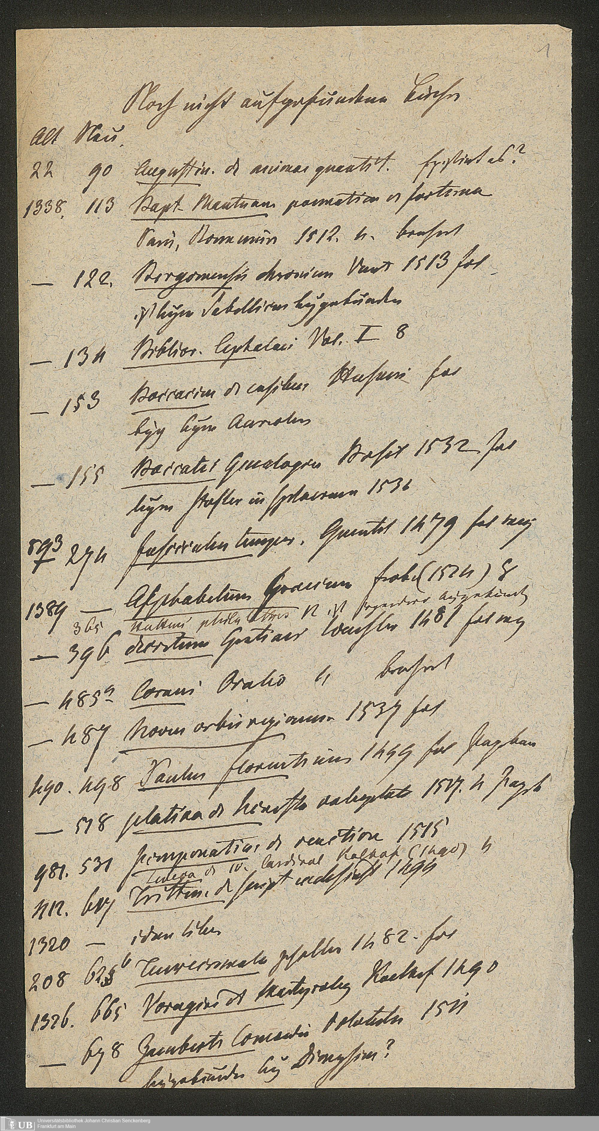 Ms. Ff. G. Kloß III.7 - Chronologisches Verzeichnis der Drucke 1468 - 1540