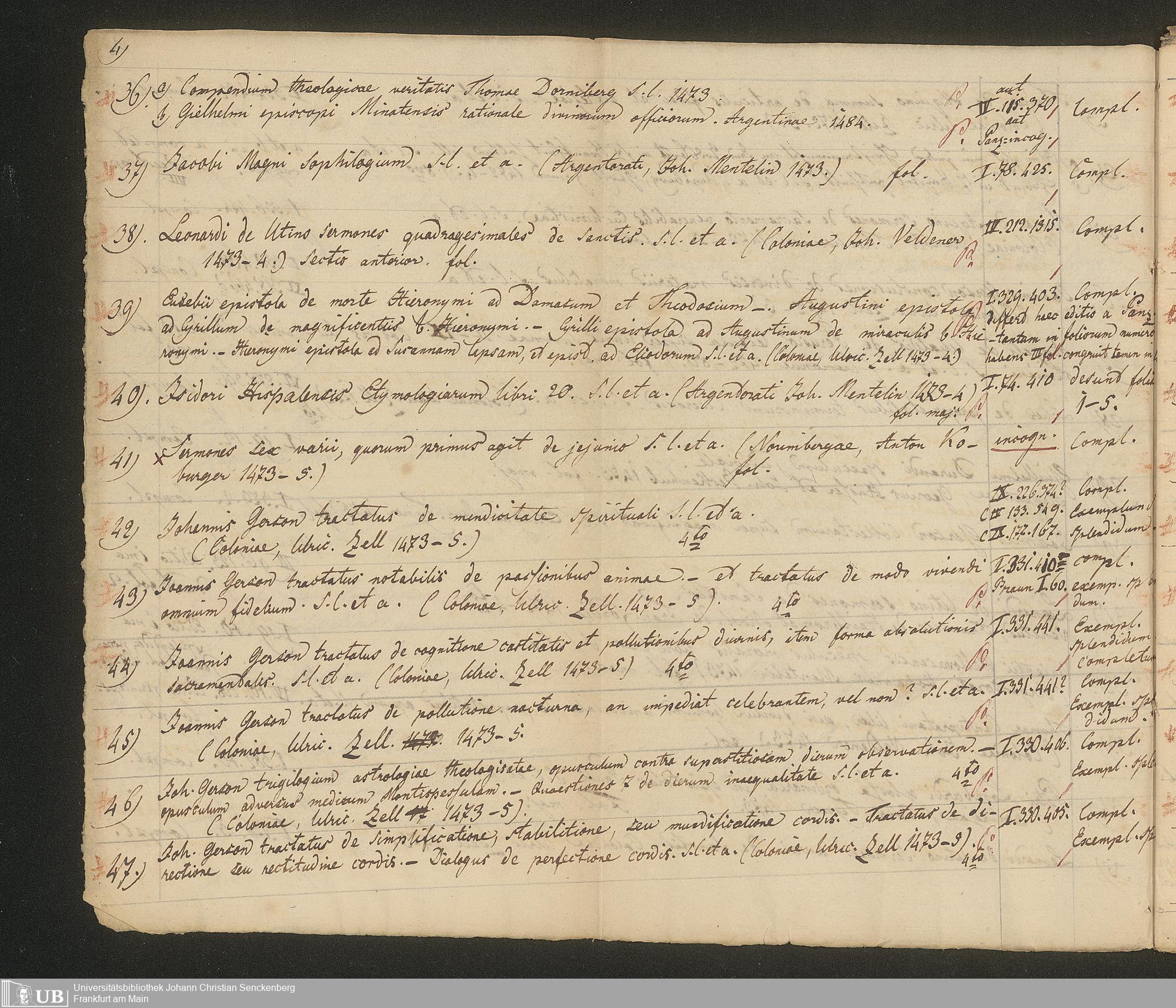 Ms. Ff. G. Kloß III.7 - Chronologisches Verzeichnis der Drucke 1468 - 1540