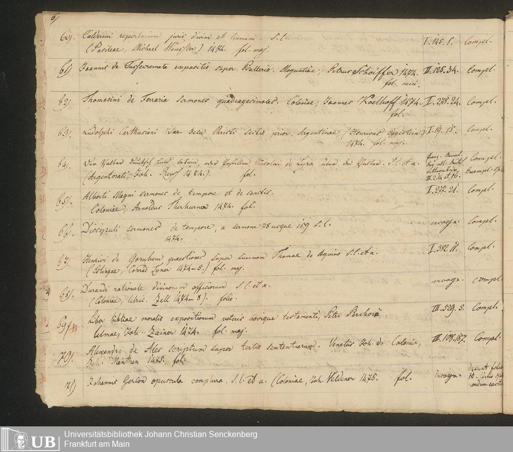 Ms. Ff. G. Kloß III.7 - Chronologisches Verzeichnis der Drucke 1468 - 1540