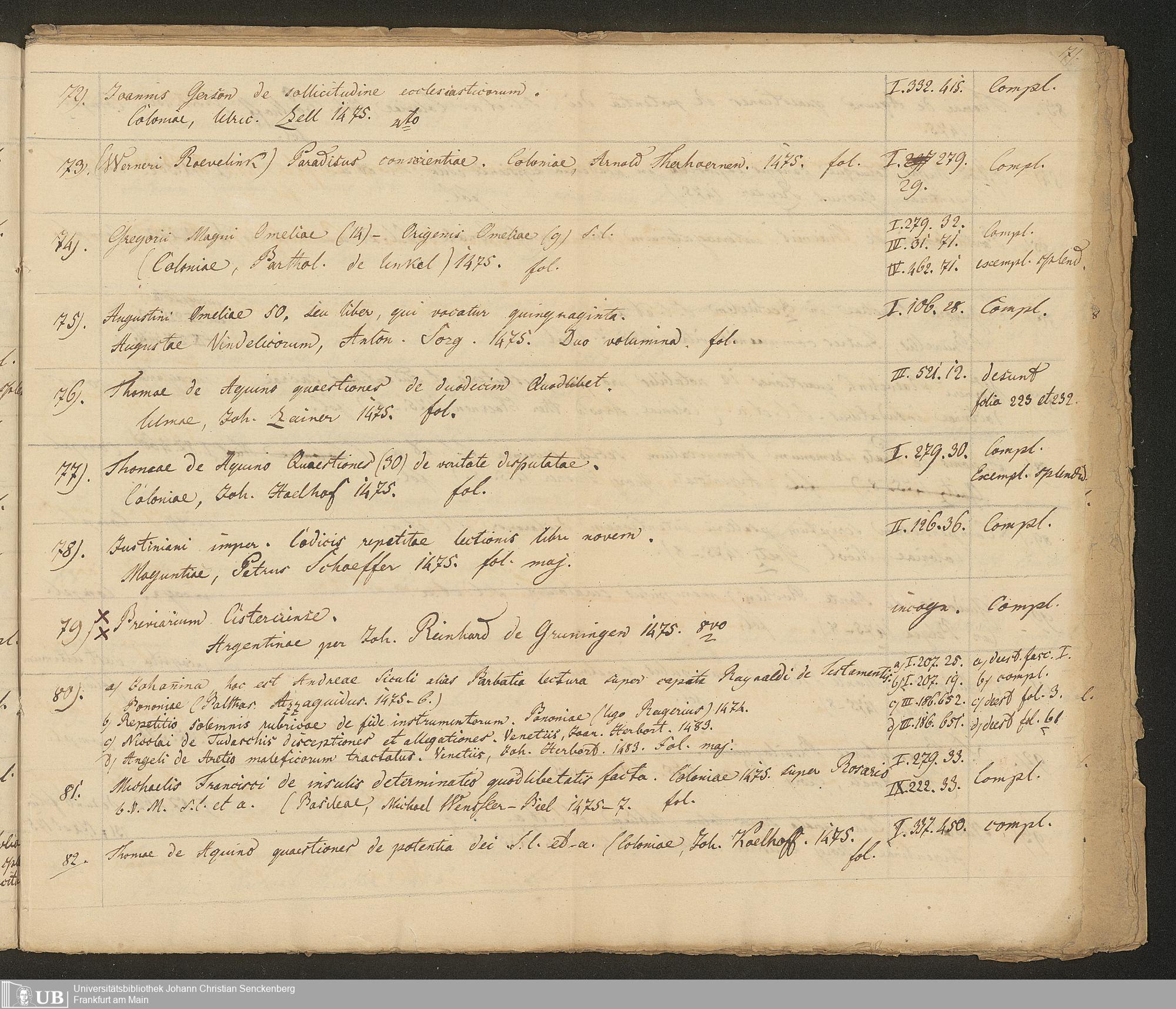 Ms. Ff. G. Kloß III.7 - Chronologisches Verzeichnis der Drucke 1468 - 1540