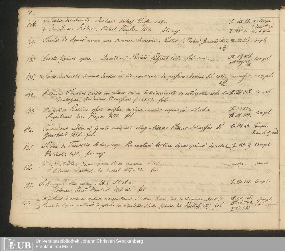 Ms. Ff. G. Kloß III.7 - Chronologisches Verzeichnis der Drucke 1468 - 1540