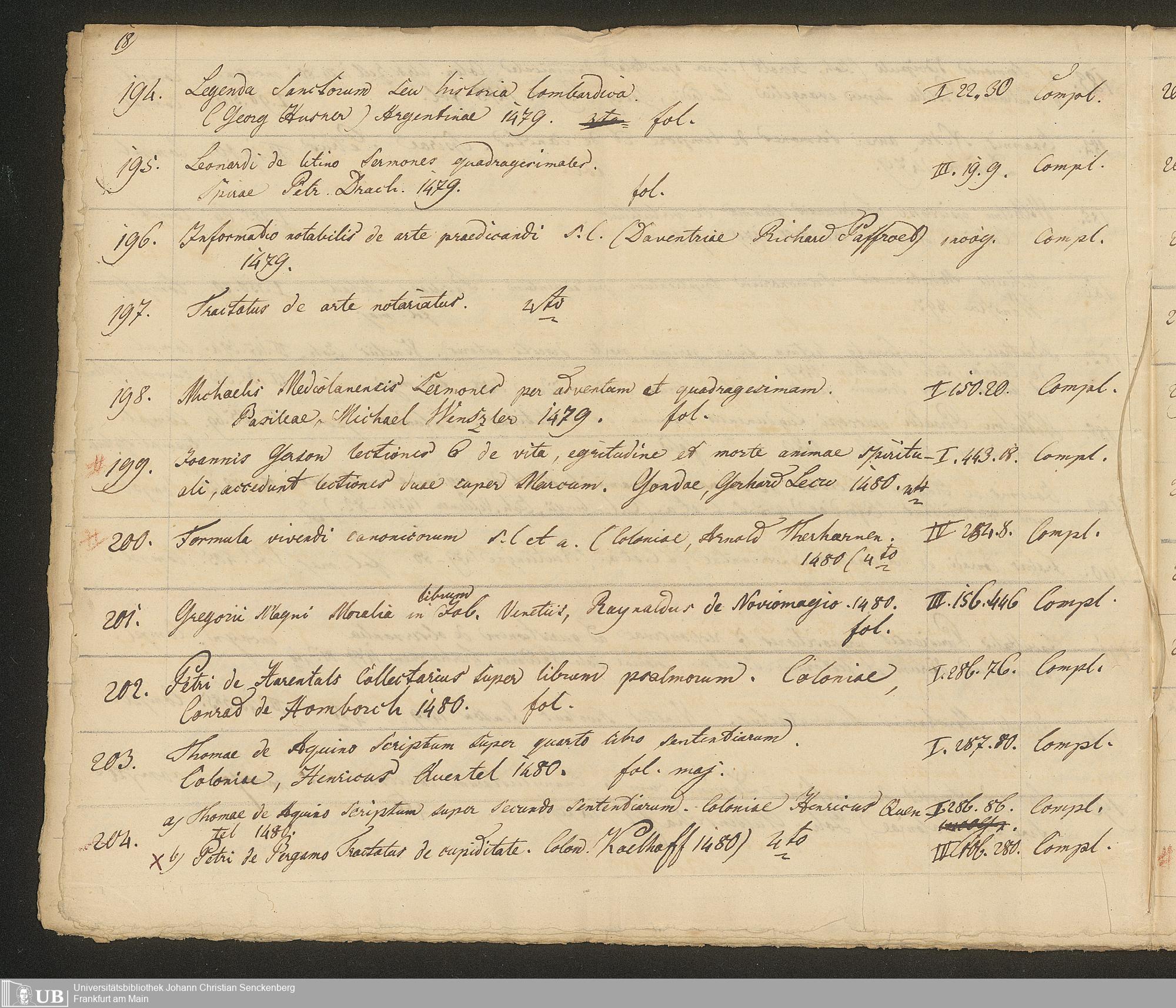 Ms. Ff. G. Kloß III.7 - Chronologisches Verzeichnis der Drucke 1468 - 1540