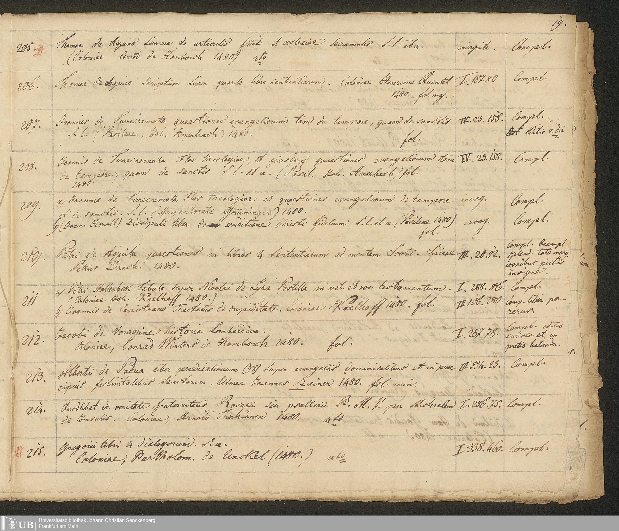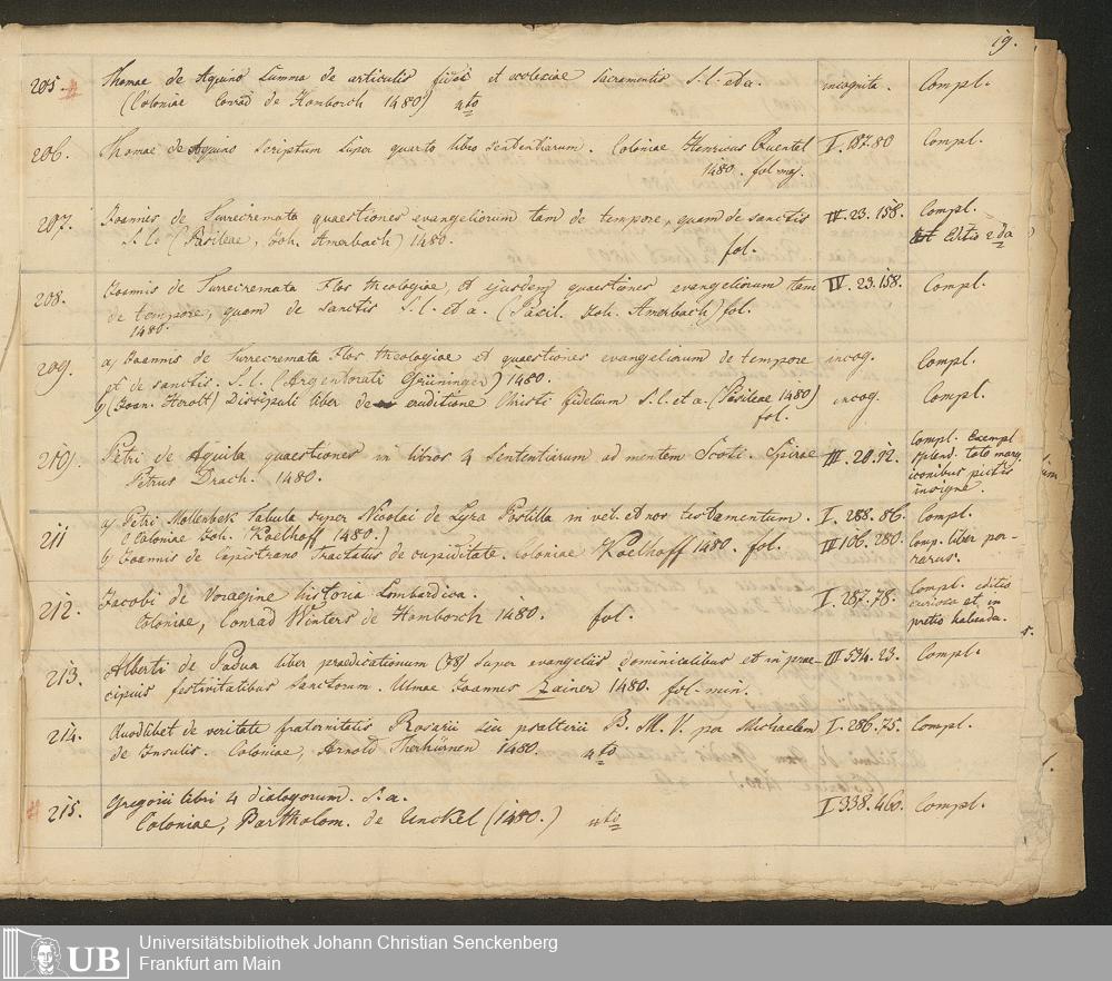Ms. Ff. G. Kloß III.7 - Chronologisches Verzeichnis der Drucke 1468 - 1540