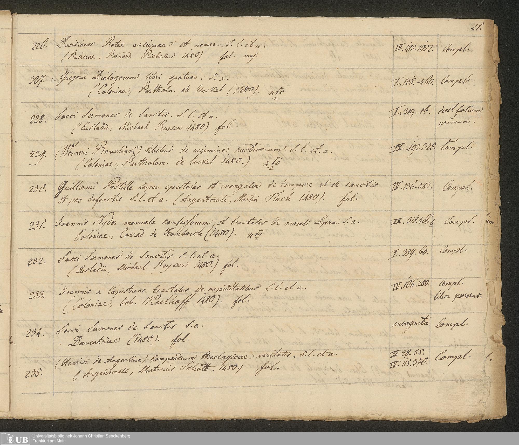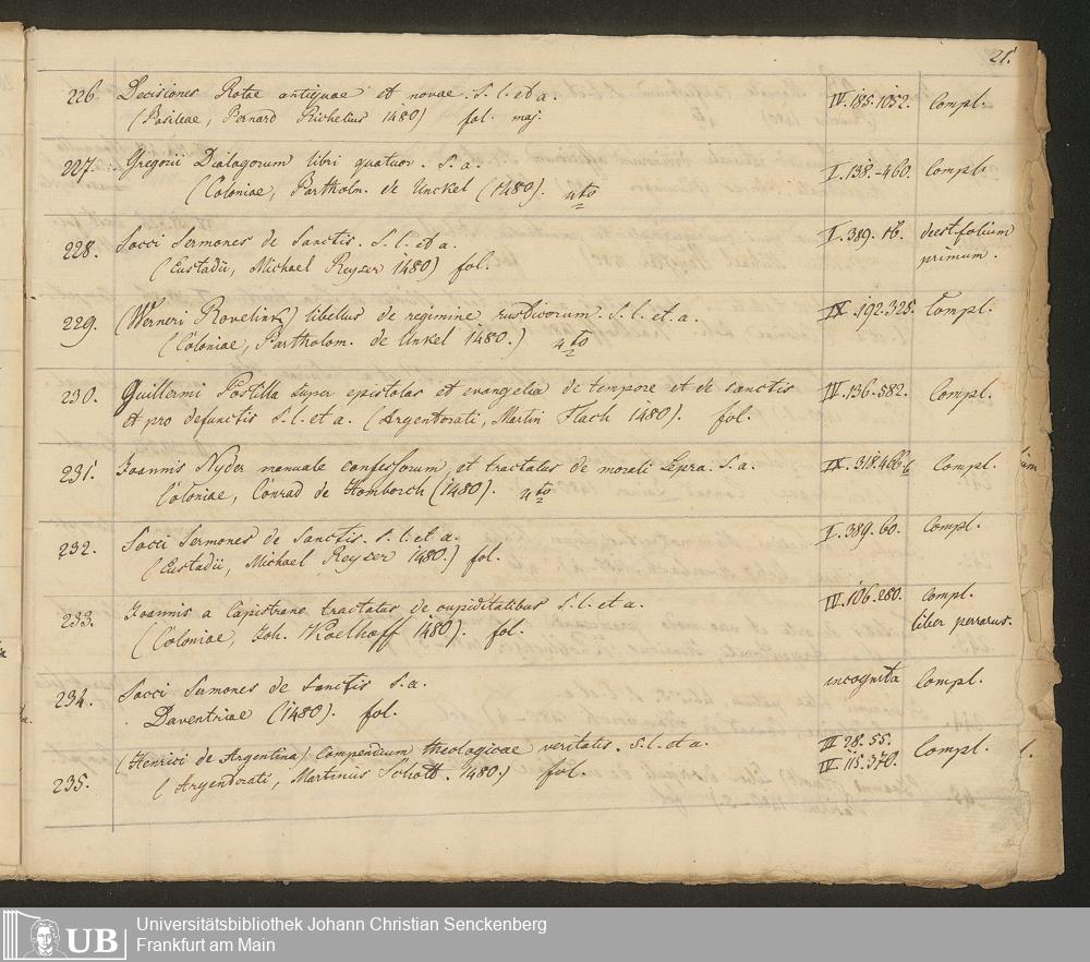 Ms. Ff. G. Kloß III.7 - Chronologisches Verzeichnis der Drucke 1468 - 1540
