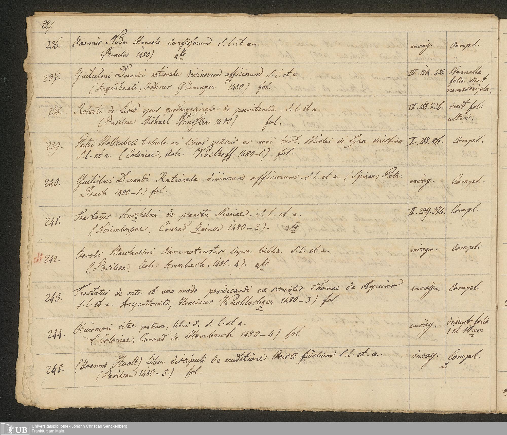 Ms. Ff. G. Kloß III.7 - Chronologisches Verzeichnis der Drucke 1468 - 1540