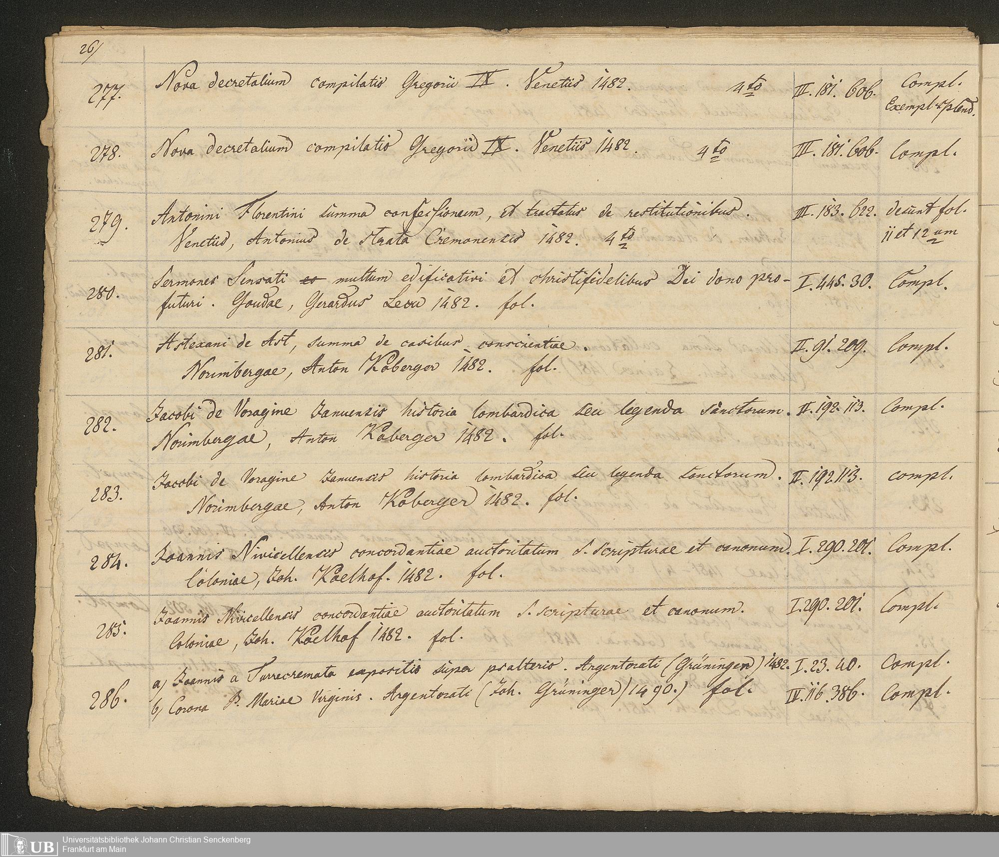 Ms. Ff. G. Kloß III.7 - Chronologisches Verzeichnis der Drucke 1468 - 1540