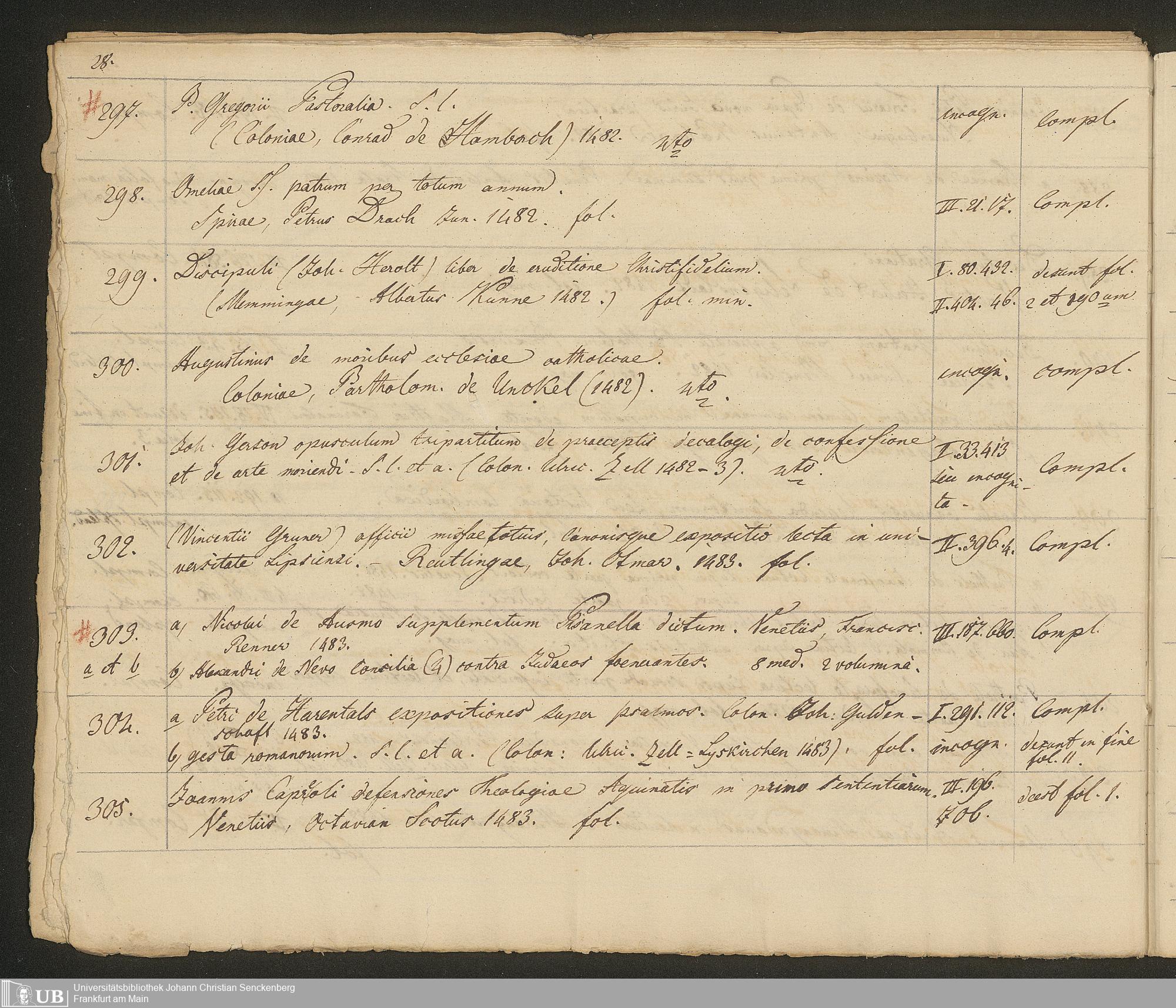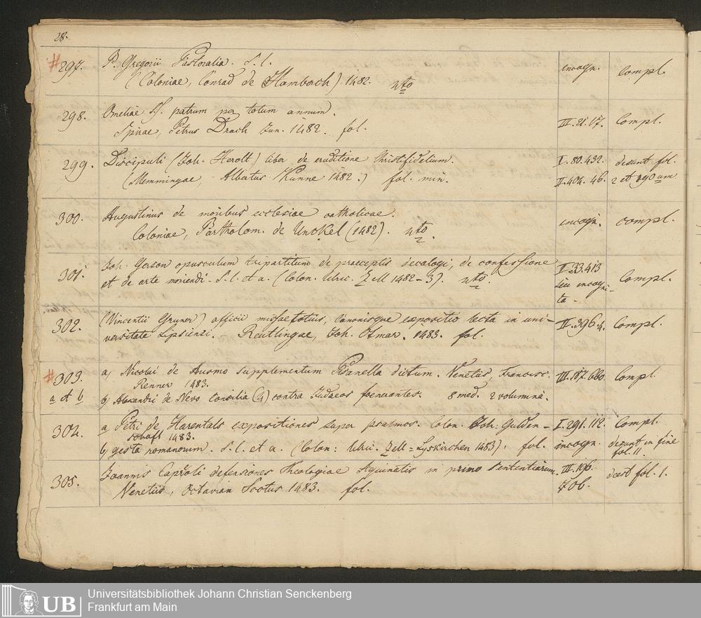 Ms. Ff. G. Kloß III.7 - Chronologisches Verzeichnis der Drucke 1468 - 1540