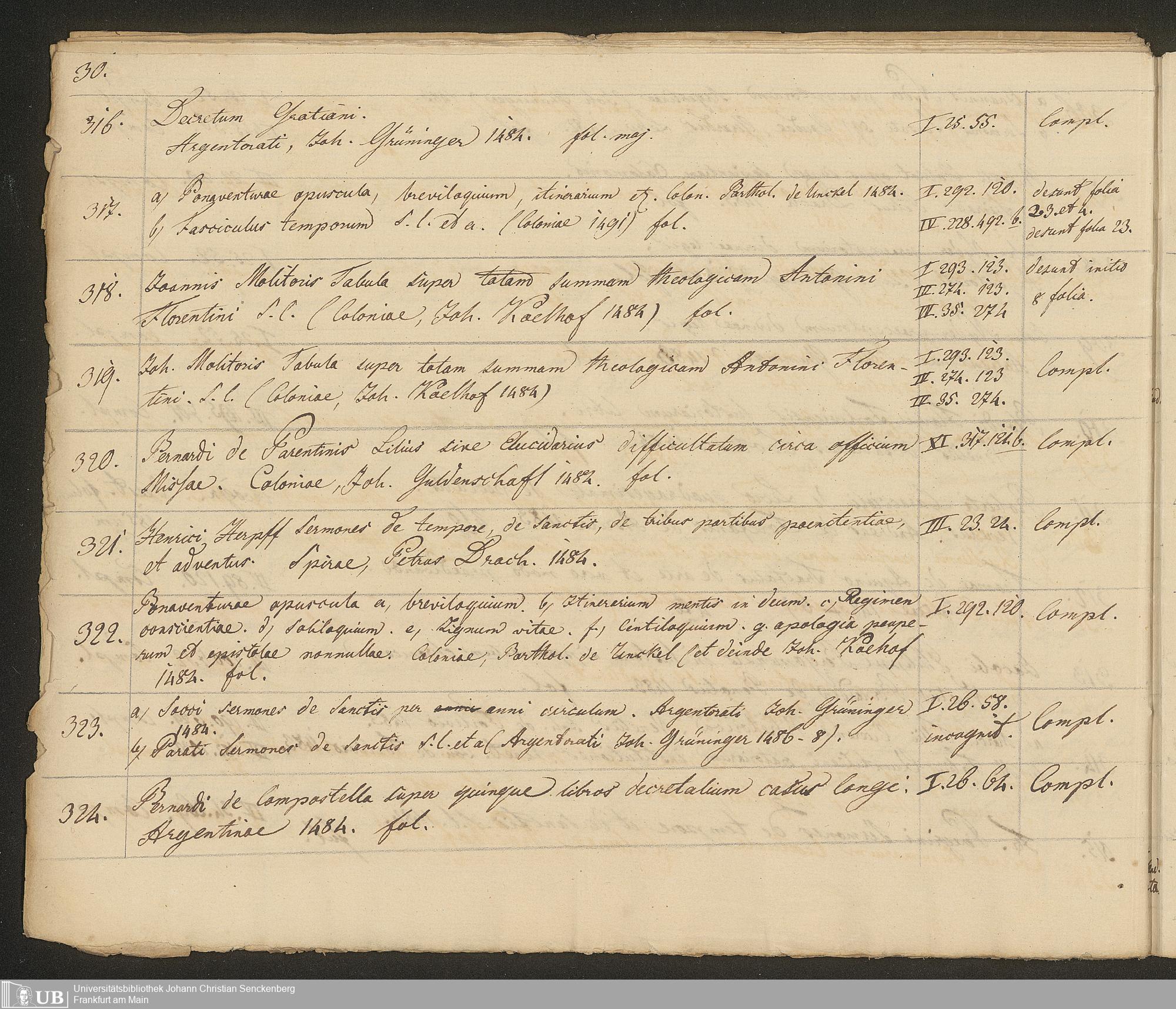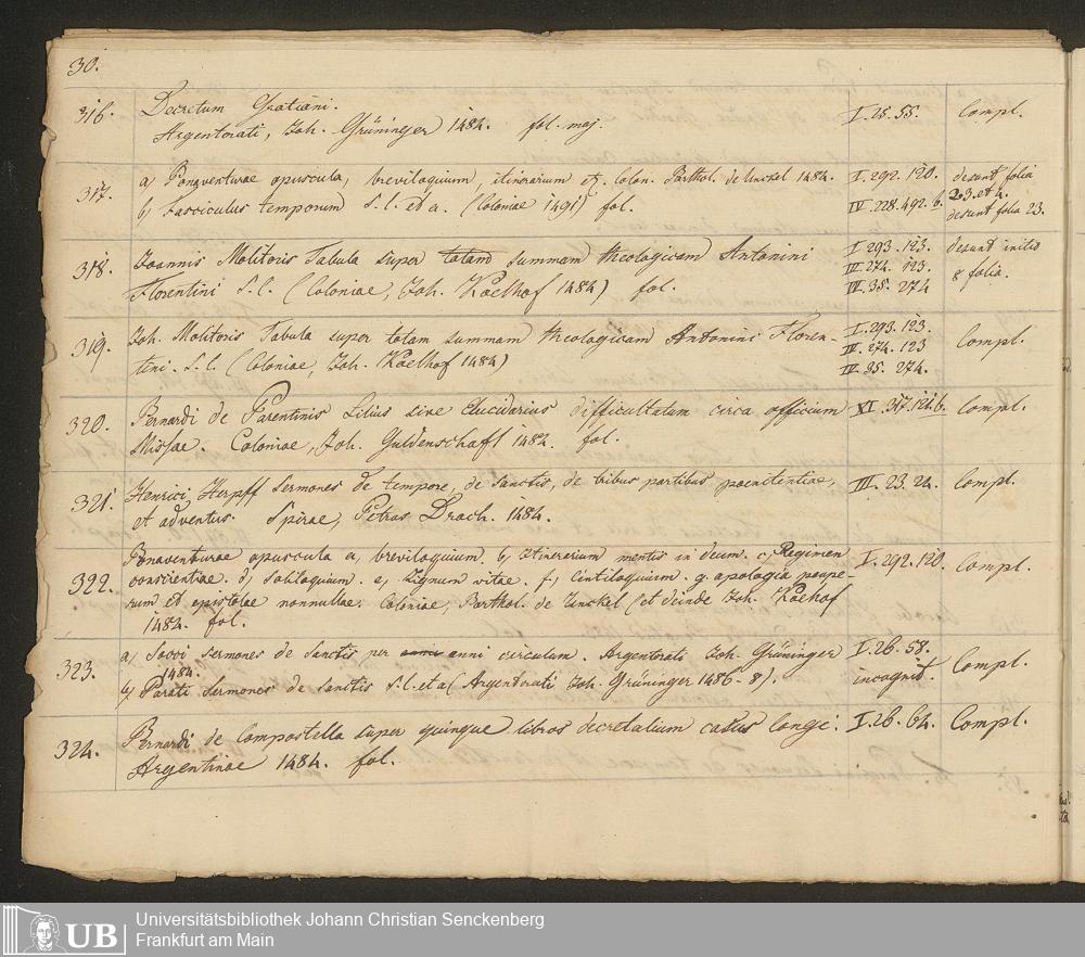 Ms. Ff. G. Kloß III.7 - Chronologisches Verzeichnis der Drucke 1468 - 1540