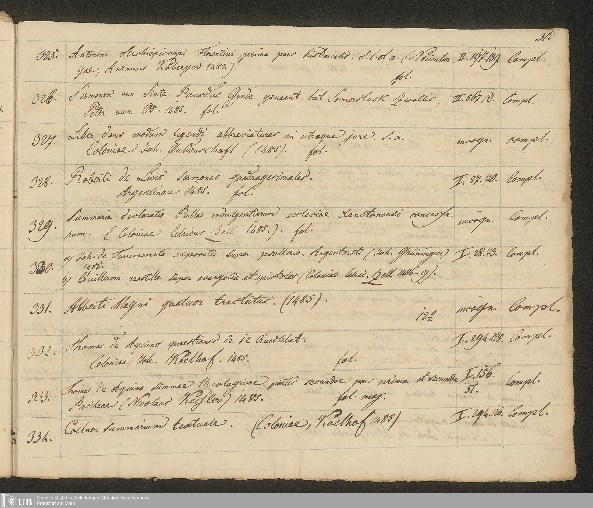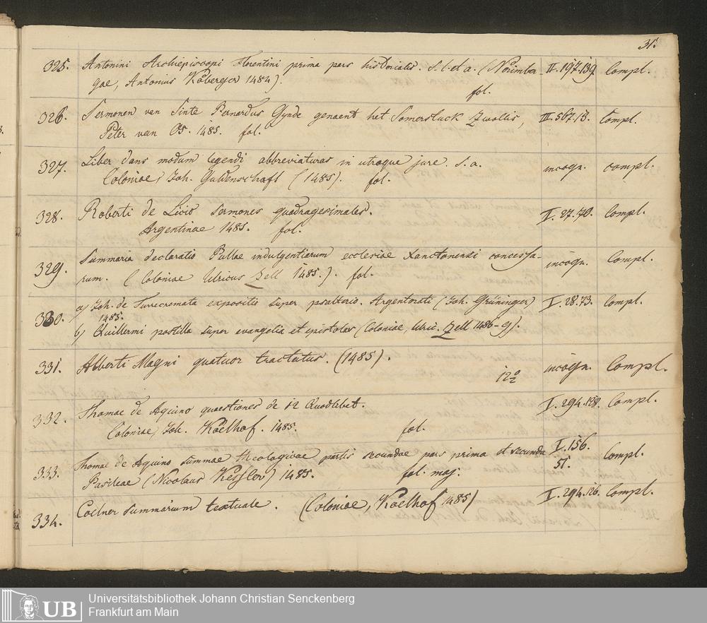 Ms. Ff. G. Kloß III.7 - Chronologisches Verzeichnis der Drucke 1468 - 1540