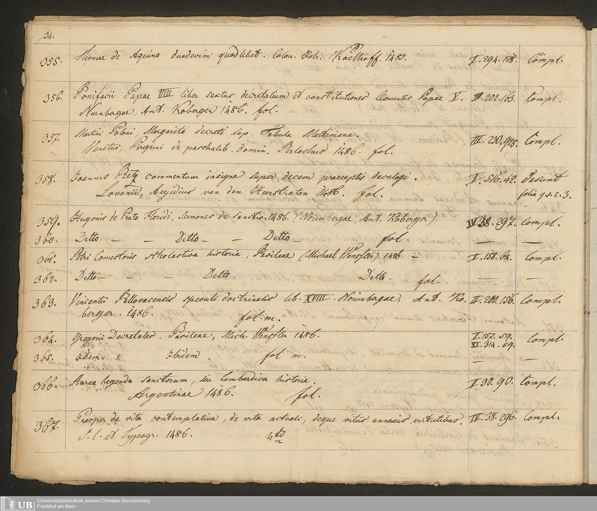 Ms. Ff. G. Kloß III.7 - Chronologisches Verzeichnis der Drucke 1468 - 1540