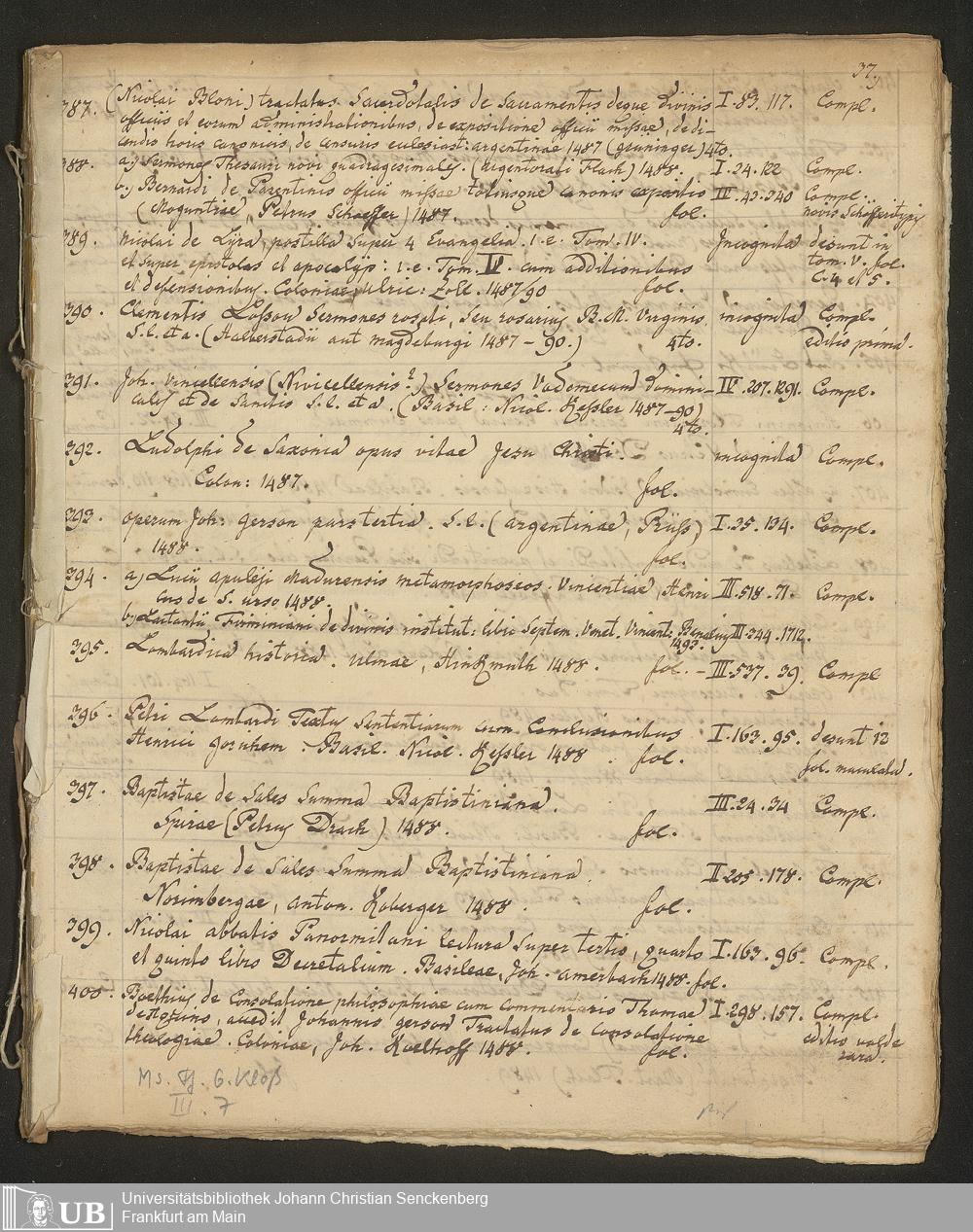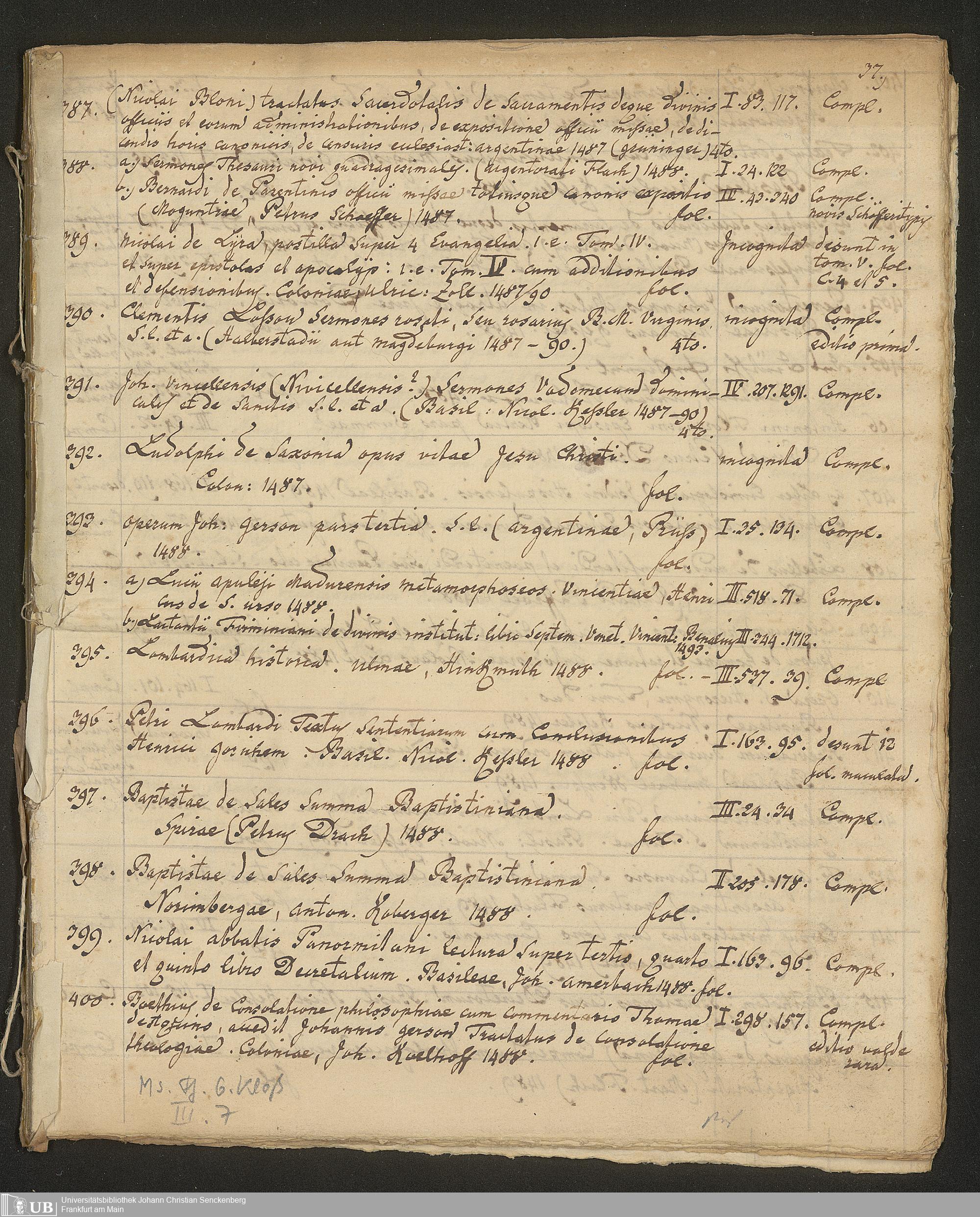 Ms. Ff. G. Kloß III.7 - Chronologisches Verzeichnis der Drucke 1468 - 1540