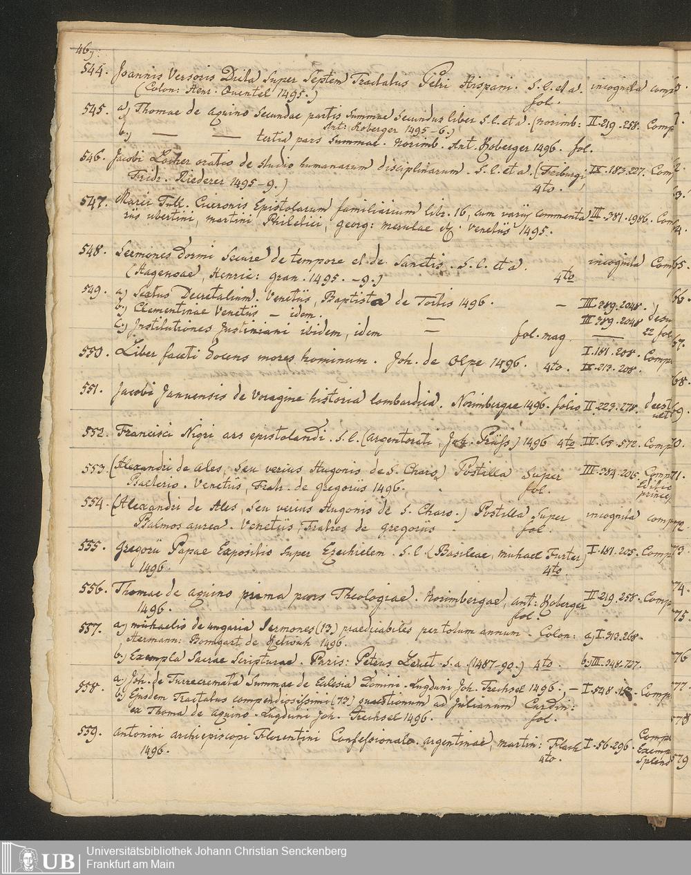 Ms. Ff. G. Kloß III.7 - Chronologisches Verzeichnis der Drucke 1468 - 1540
