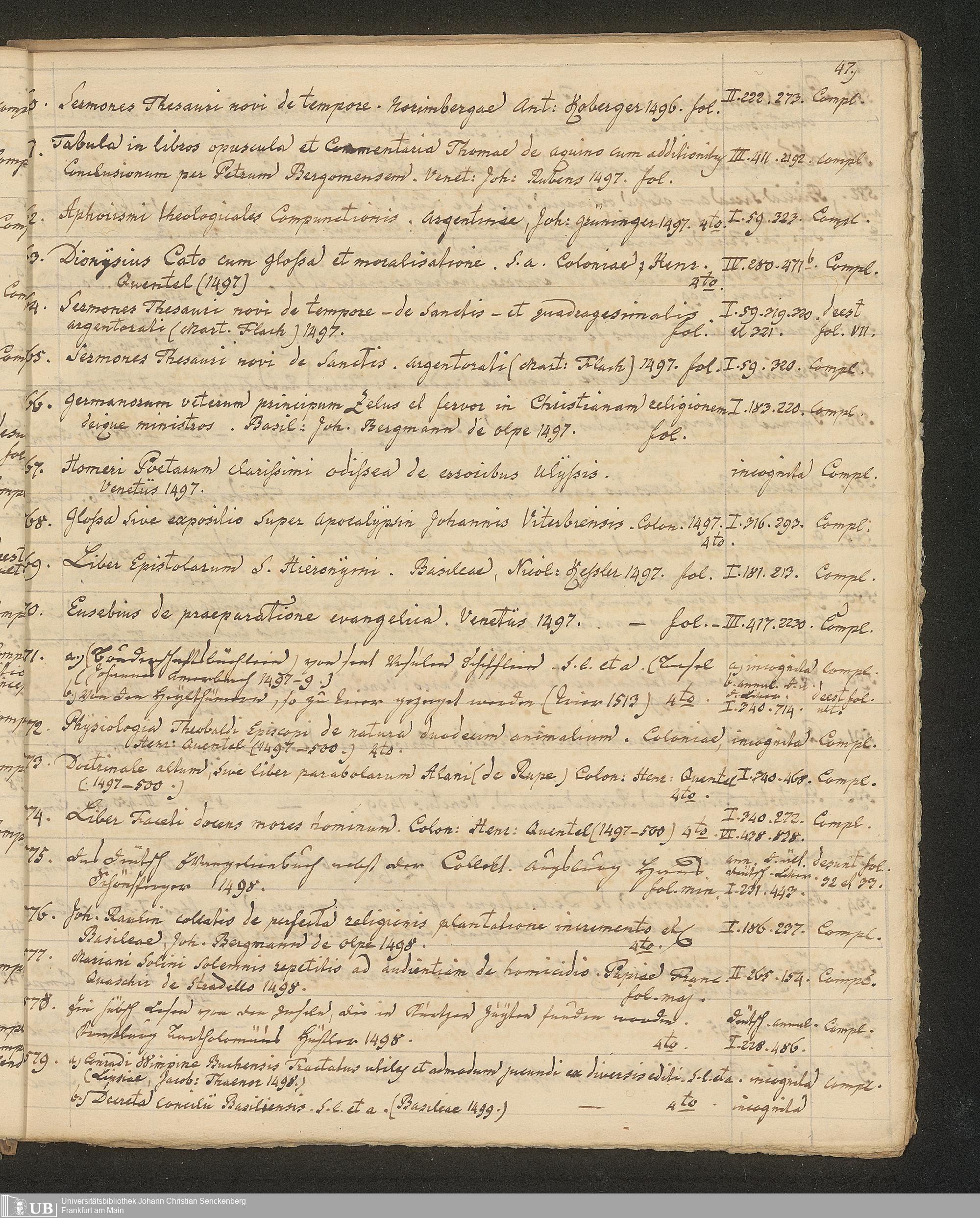 Ms. Ff. G. Kloß III.7 - Chronologisches Verzeichnis der Drucke 1468 - 1540