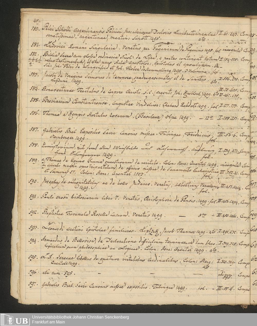 Ms. Ff. G. Kloß III.7 - Chronologisches Verzeichnis der Drucke 1468 - 1540