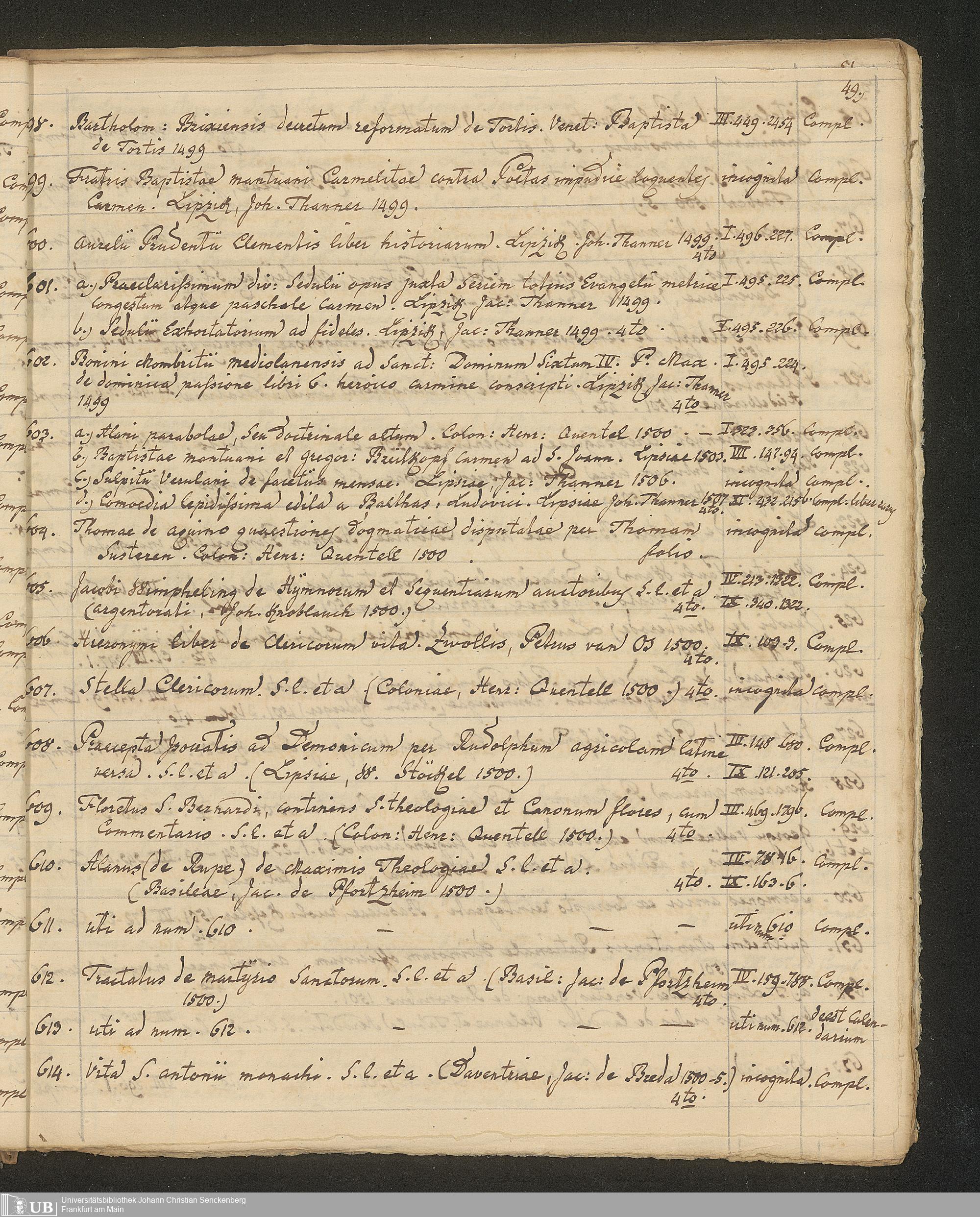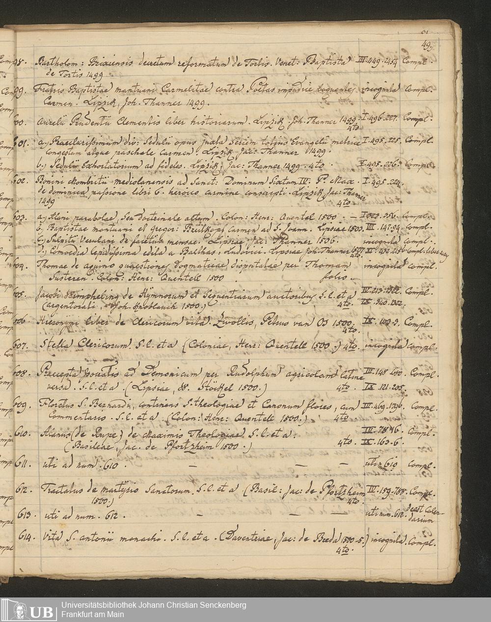 Ms. Ff. G. Kloß III.7 - Chronologisches Verzeichnis der Drucke 1468 - 1540